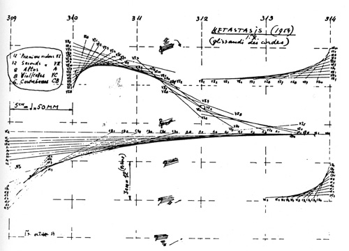 (관련 자료, 더 많은 자료를 보시려면 https://classical20.com/2015/08/12/iannis-xenakis-metastasis-1954/)