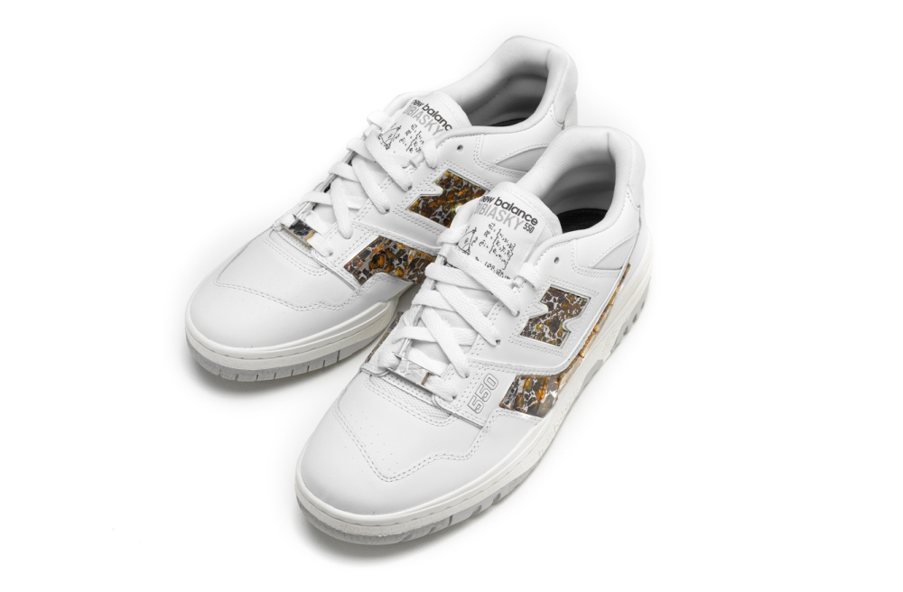 뉴발란스 550의 옆면 패널에 운석을 적용해 실제 에메랄드부터 다양한 광택이 감도는 실루엣을 완성했다.
