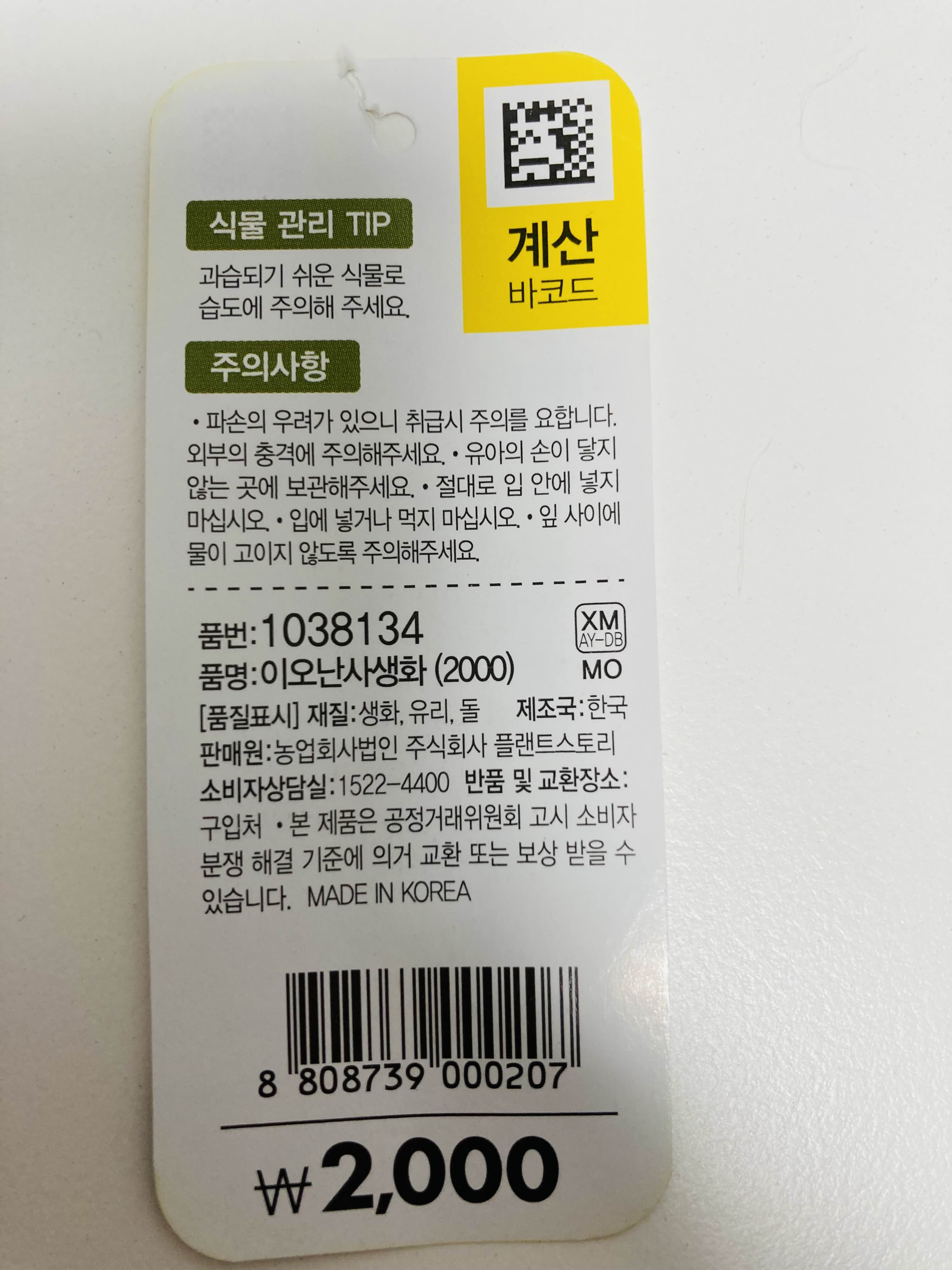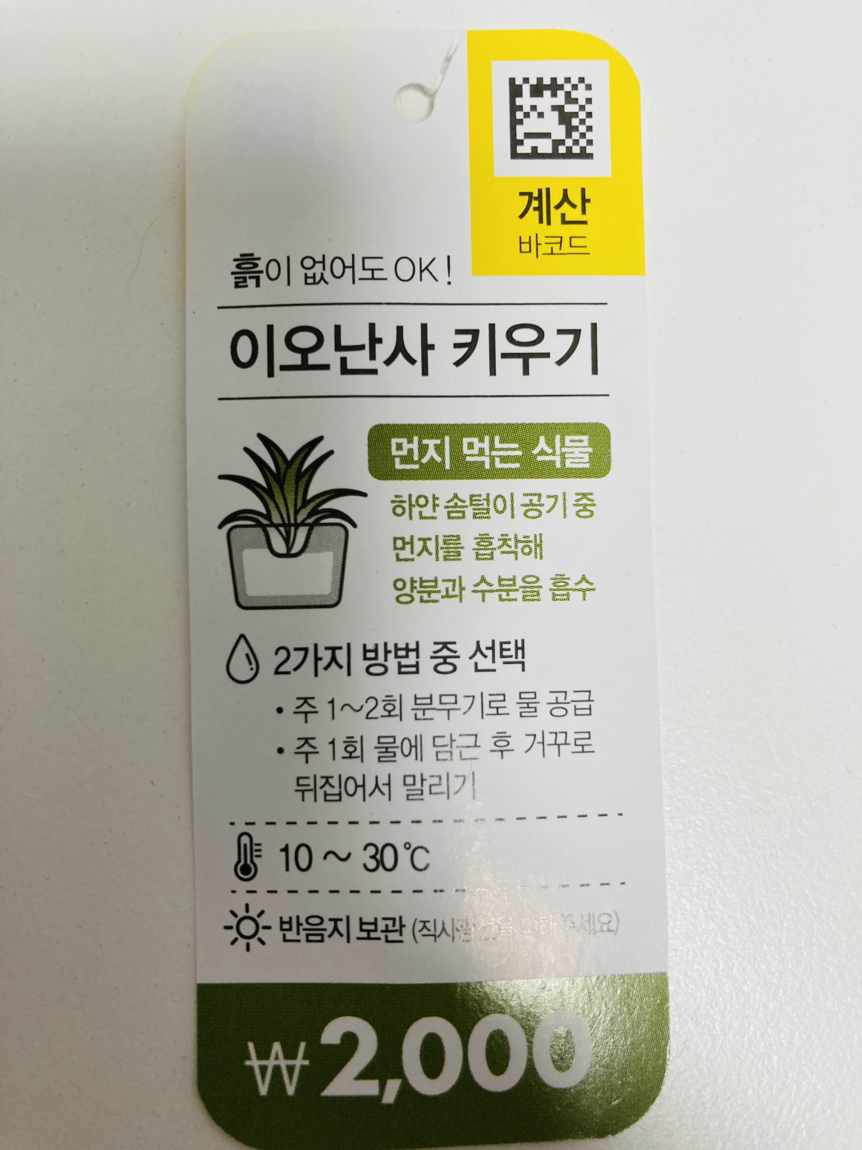 결국 못사게 되어, 다이소에 혹여나 식물이 있을까 하고 일요일에 마실 나간김에 다녀왔는데 운 좋게도 이렇게 식물이 있다. 우리동네 다이소는 식물이 금방 없어지기때문에 있을때 사놔야 한다. 한국산 이오난사.
