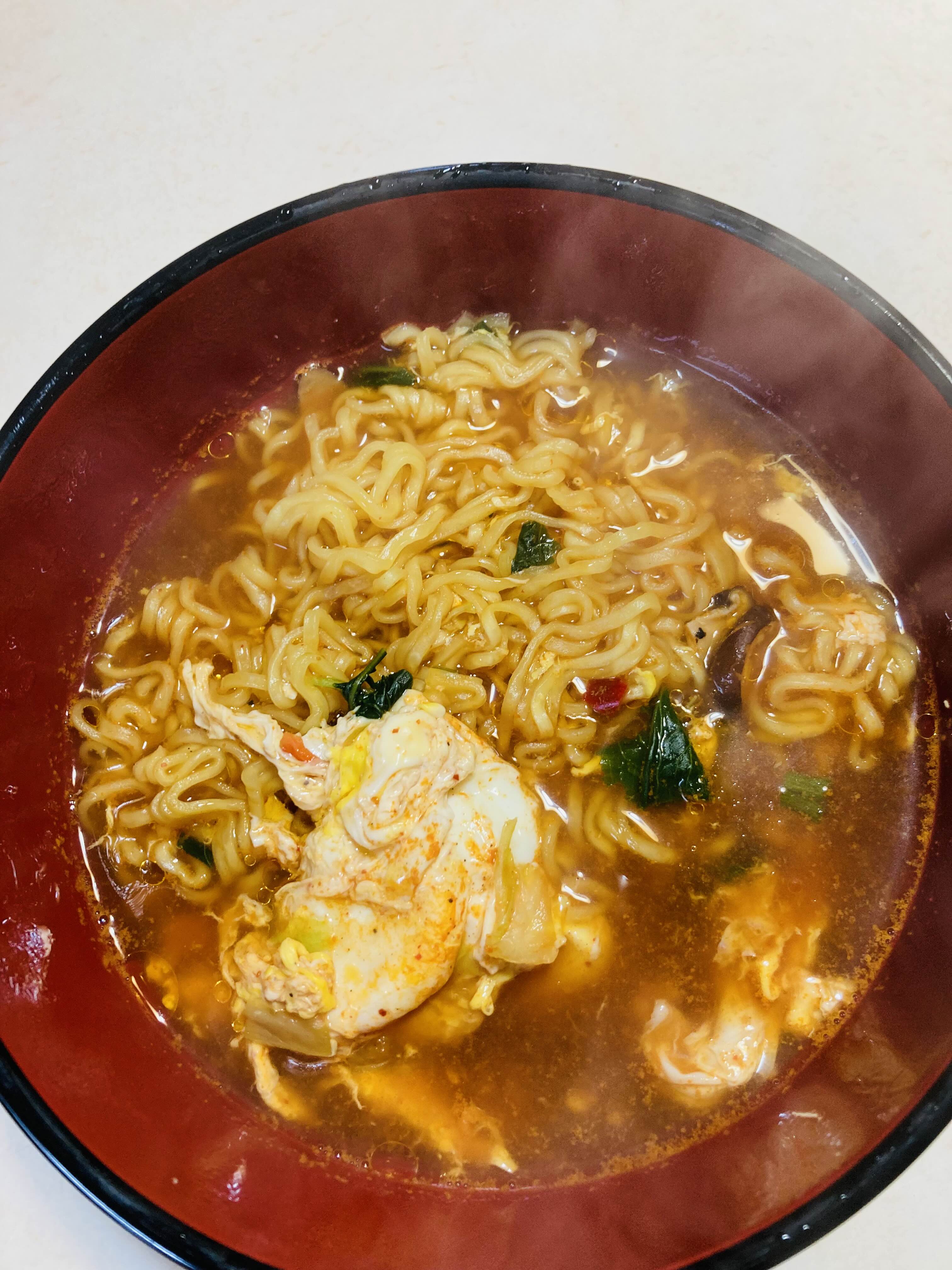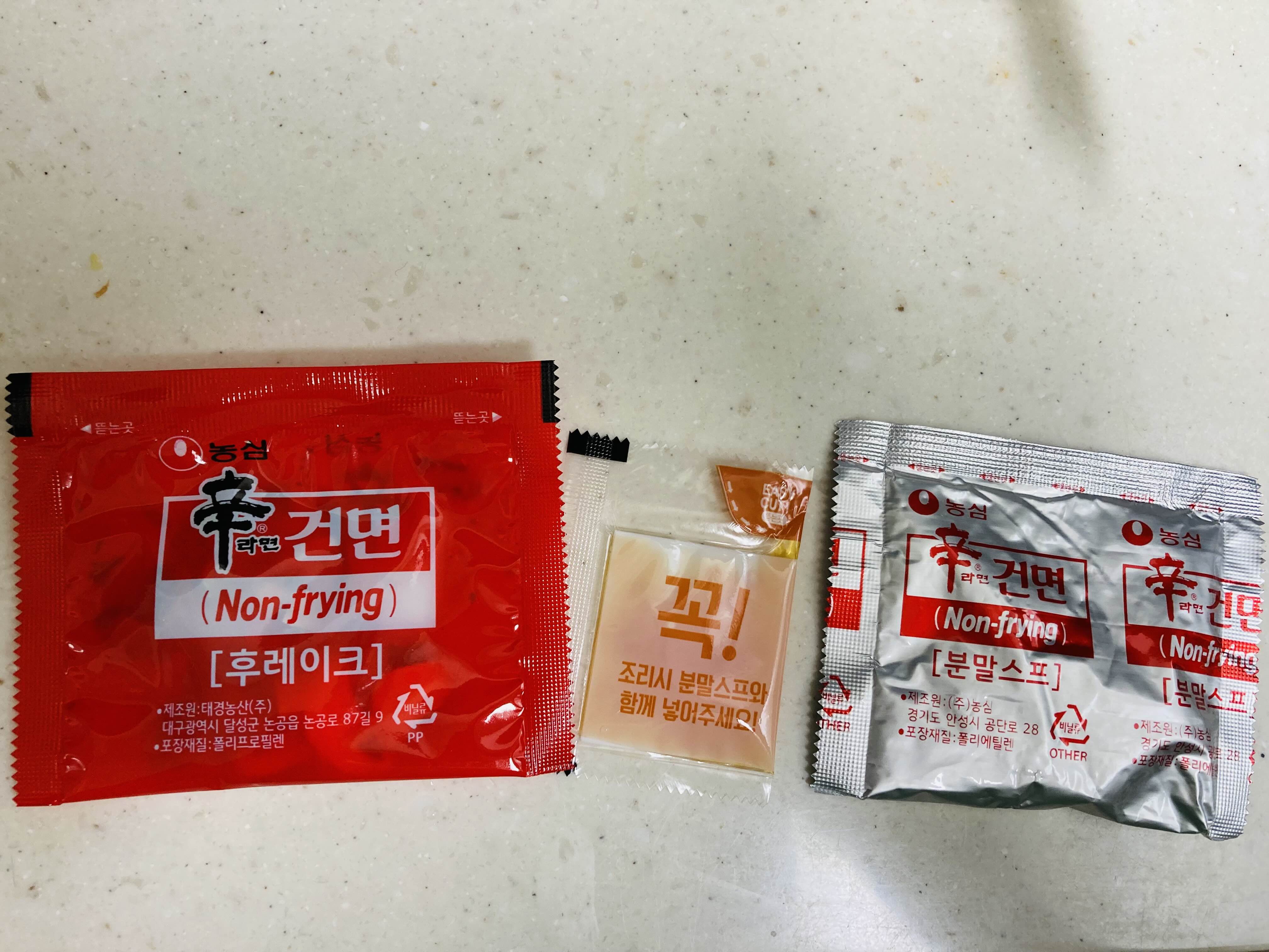저 중간에 있는 기름이 라면의 풍미를 더해준다. 기름이 없는 라면에 고추기름을 넣어주는 느낌!!