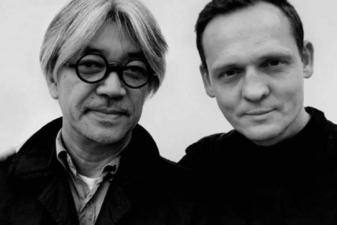 류이치 사카모토 (왼쪽)와 독일 미디어 아티스트이자 교수, DJ 알바노토(실제네임은 다릅니다.)