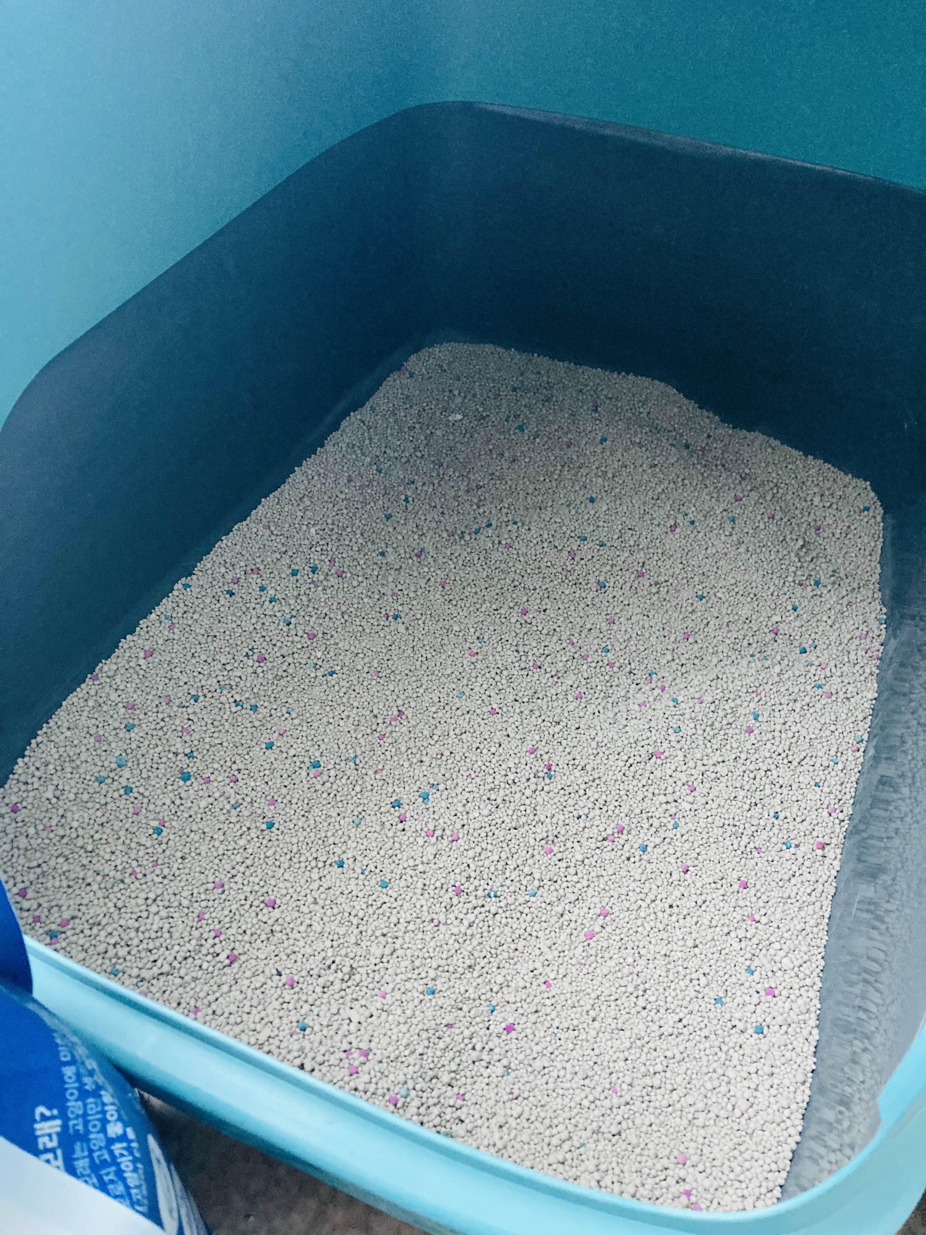 (사실 외국에 있었을 때에도 이런 입자의 부드러운 고양이 모래는 본 적이 없습니다.)
