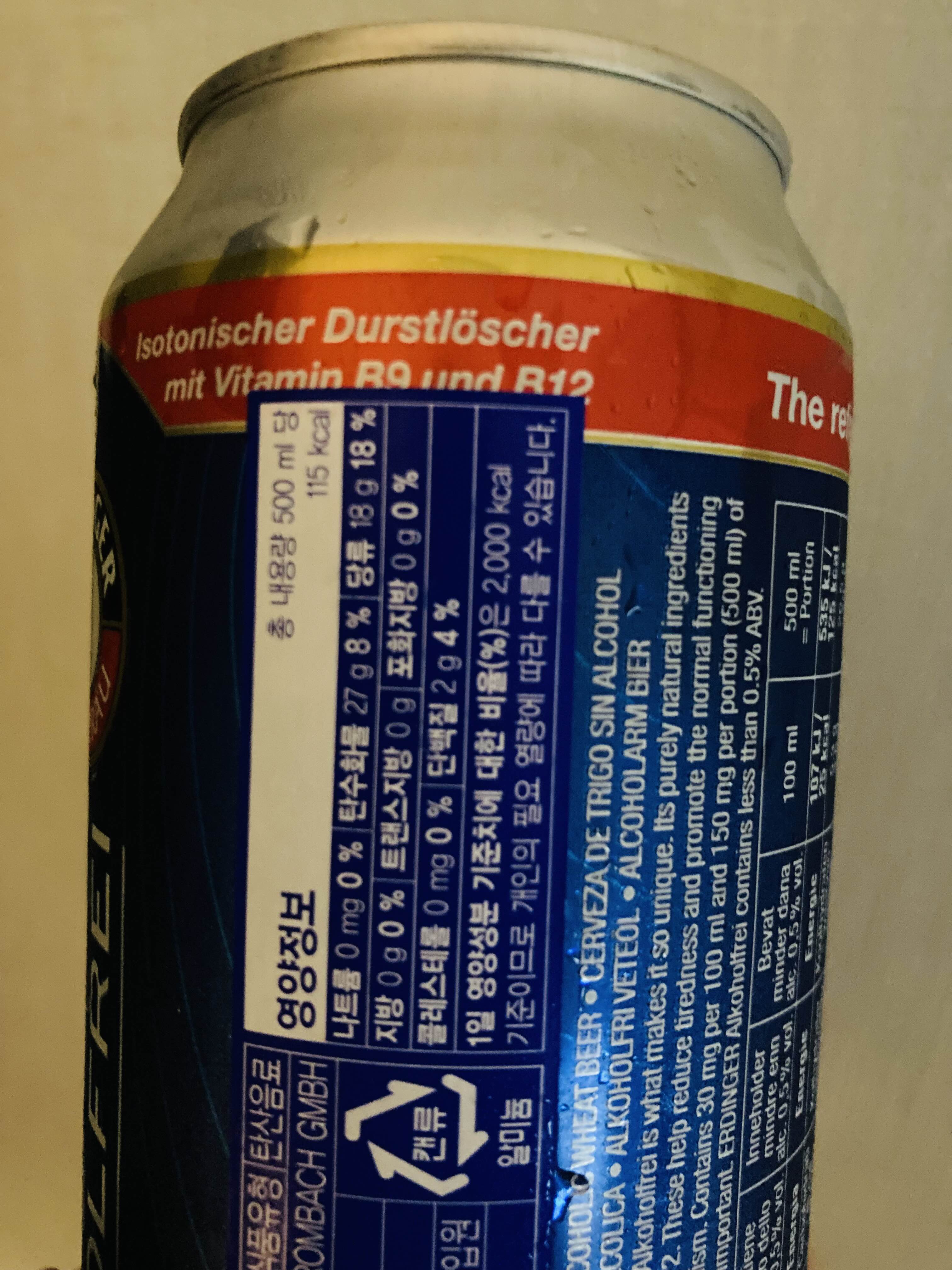 ※독일 무알콜 맥주는 그래도 0.5%의 알콜이 포함되어 있습니다.