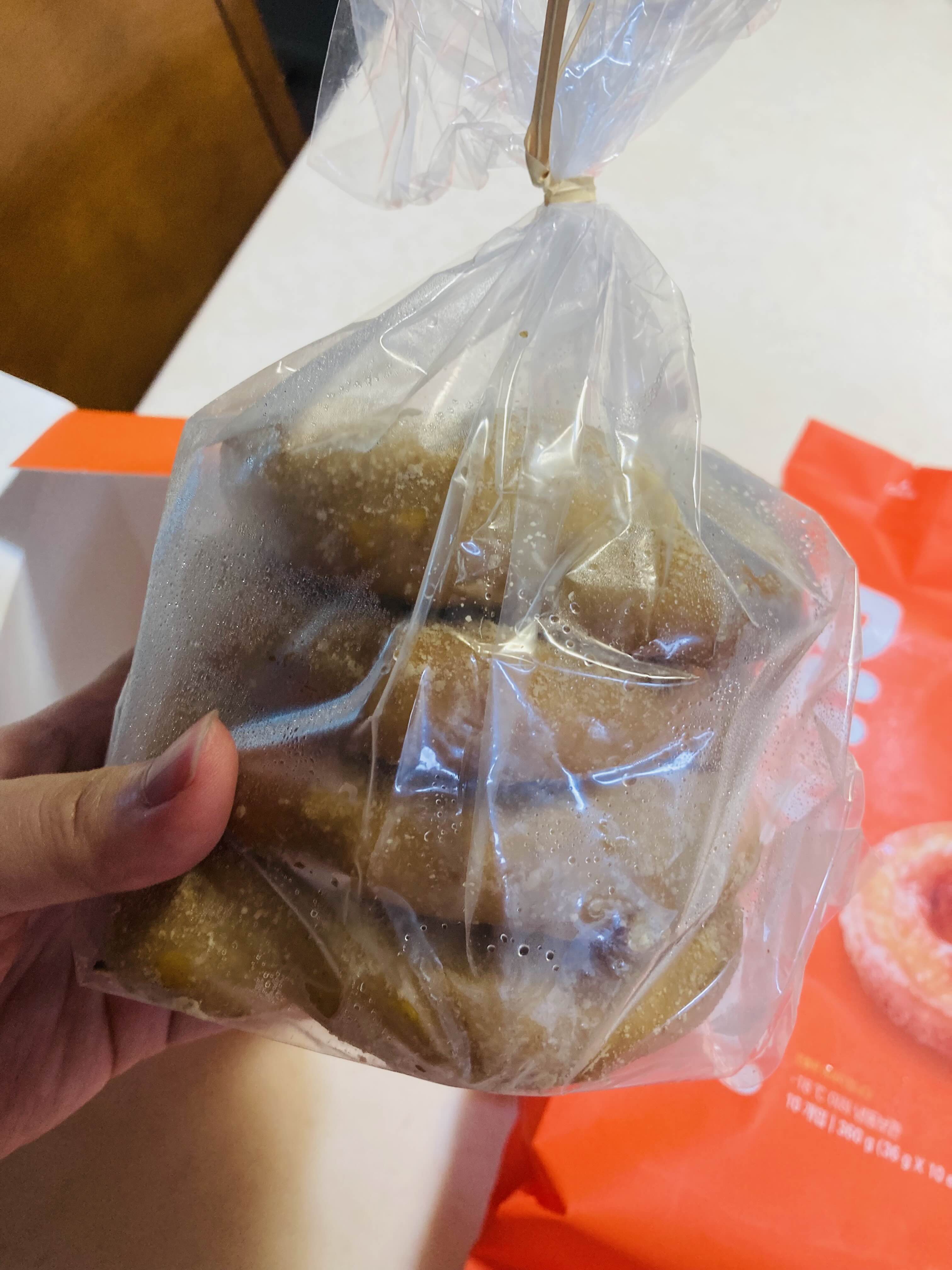 그냥 자연 해동으로 먹으니 약간 축축한 도넛 먹는 기분이라,
