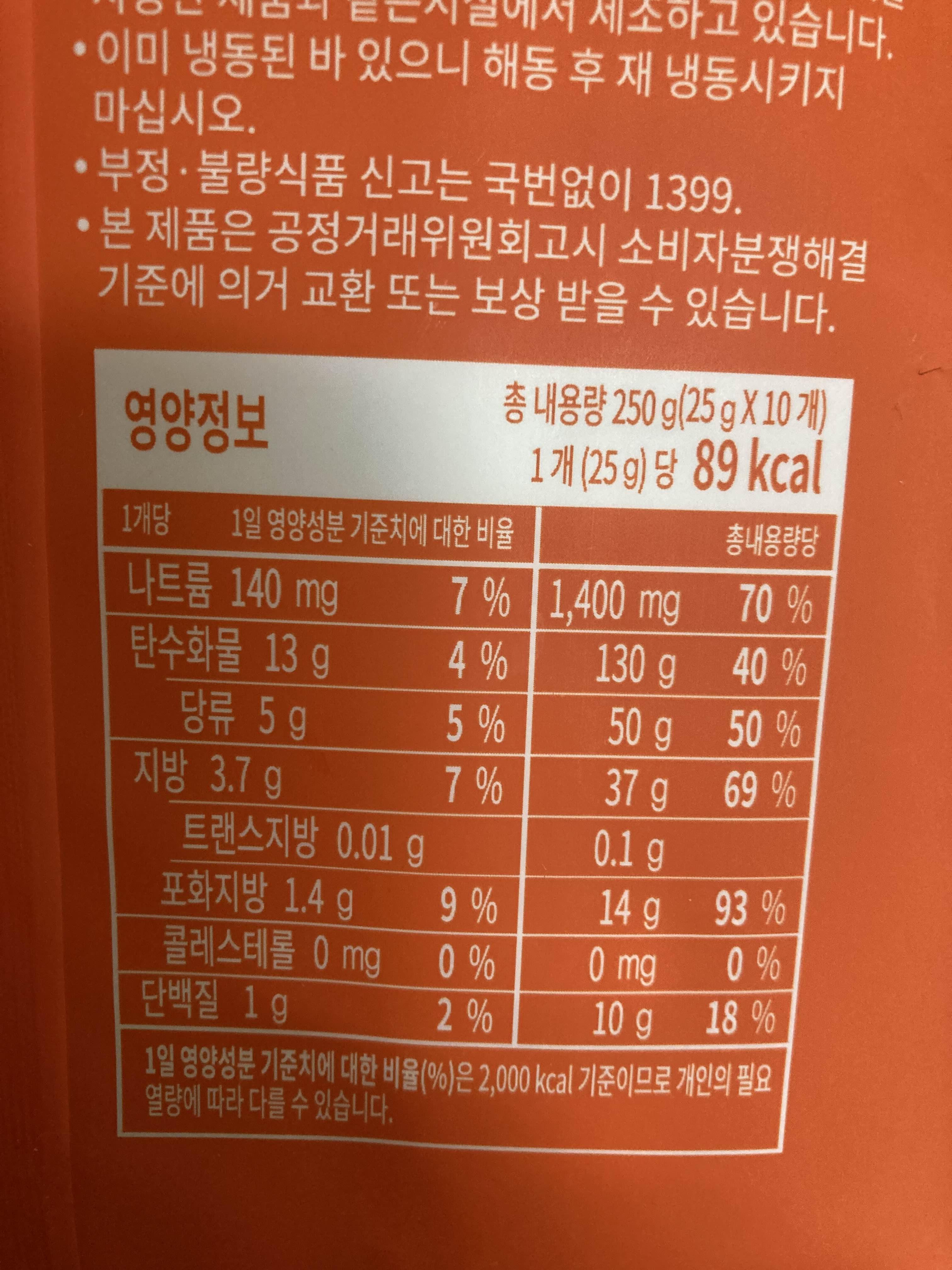 1개당 89칼로리라.... 괜찮은 거 같아요.