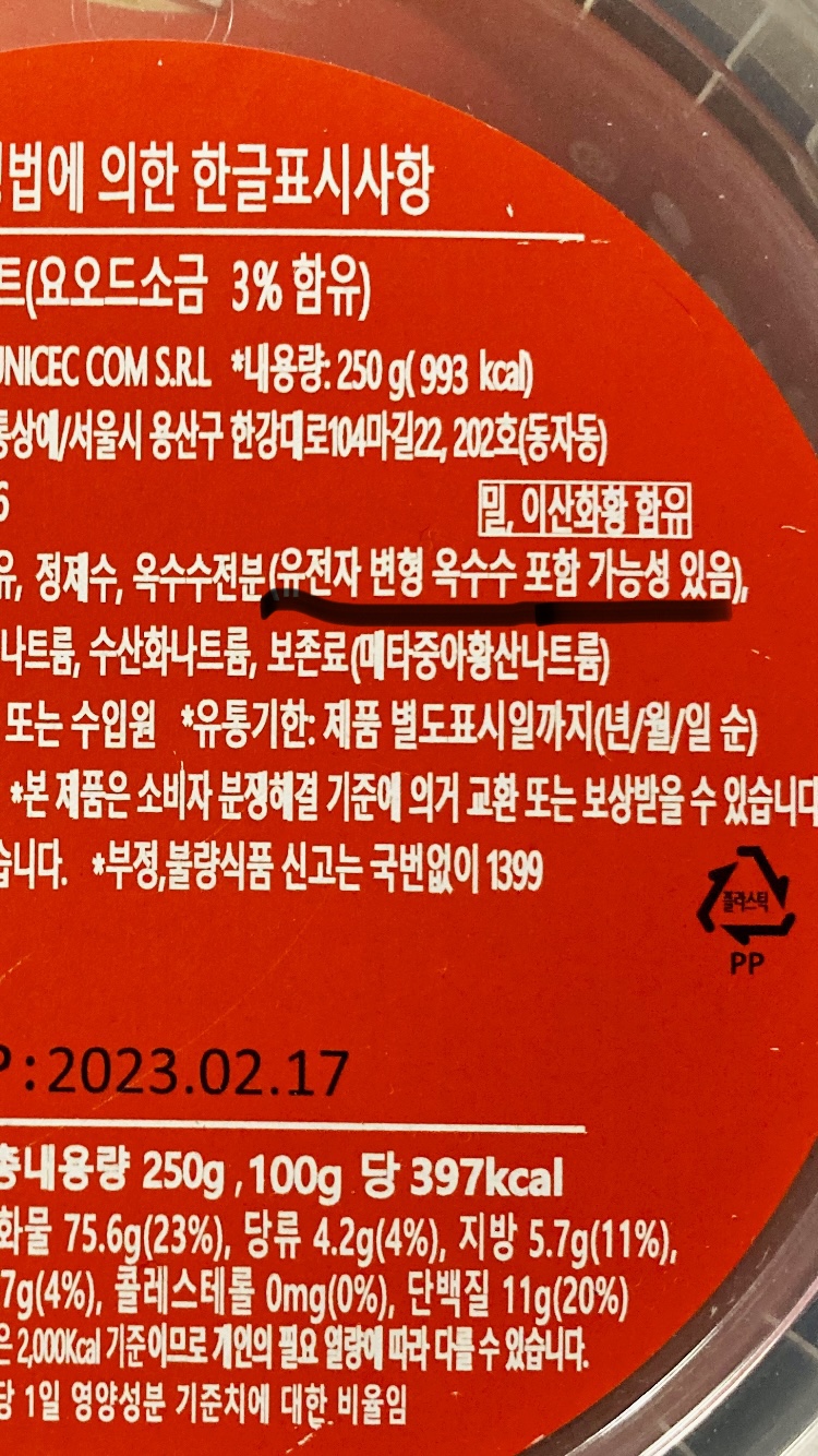 아마도 편의점 음식들은 대부분 그럴것이다.