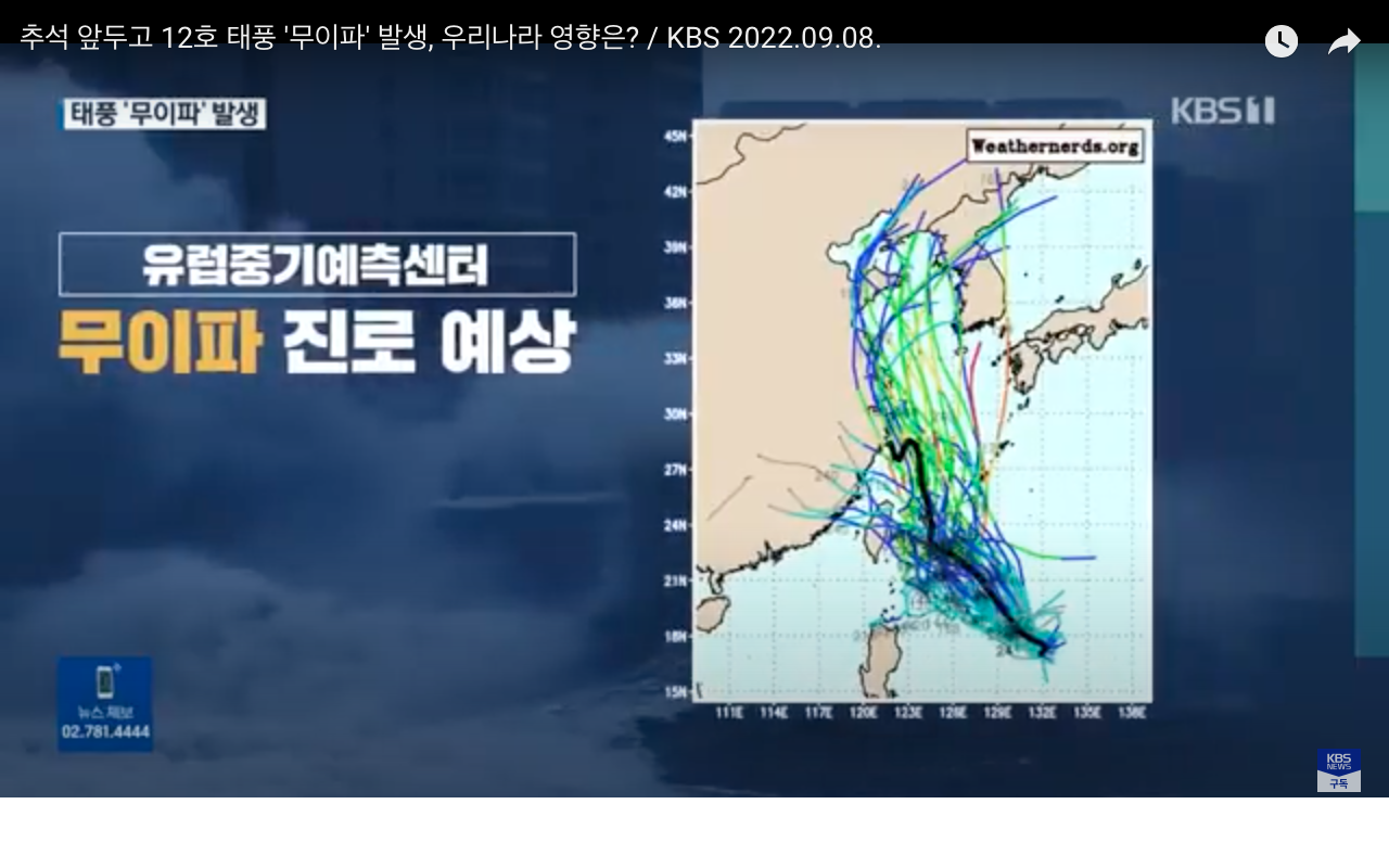 11일이 되어봐야 알 수 있으며, 만약에 온다면 전문가들은 힌남노의 영향으로 그리 세지 않게 영향력이 갈 것이다라고 예상을 하고 있습니다. 만약에 영향이 간다면 서울과 경기지역에 영향일 갈 것이라고 했습니다. 유럽중기예측센터는 한국에 영향이 갈 것이라고 나왔기에 아무래도 이번에도 준비를 해야할 것 같다는 생각입니다.