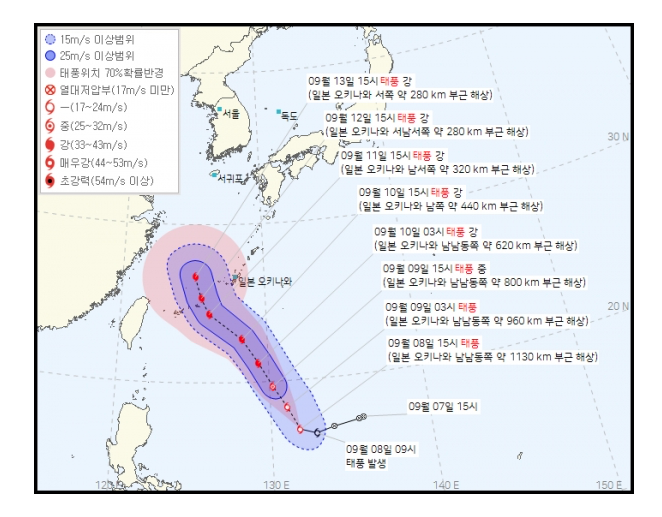 때문에 추석연휴 10일부터 제주도에서 낮부터 비가 내리기 시작하여 또 다시 태풍에 예견된 만반의 준비를 해야하는 것이 아닌가 하는 긴장감을 높이고 있습니다. 일단은 13일 오전부터 일본 오키나와 남남동쪽 부근에서 발달하여 대만쪽으로 북서진하면서 세력을 키워 13일 오전에는 일본 오키나와 남서쪽 290km부근 해상까지 올라올 것으로 예상하고 있으며, 15일 오전에 제주도 서쪽 해상을 통과해 서해상까지 진출하는 것으로 전망했다. 힌남노 보다 더 위험해질 수 있다는 말들이 나오기도 하지만 이번에 오게될 12호 태풍에 대한 예측은 아직 알 수 없는 것으로, 지나간다고 해도 서쪽의 영향을 받을 예상이 된다고 합니다.
