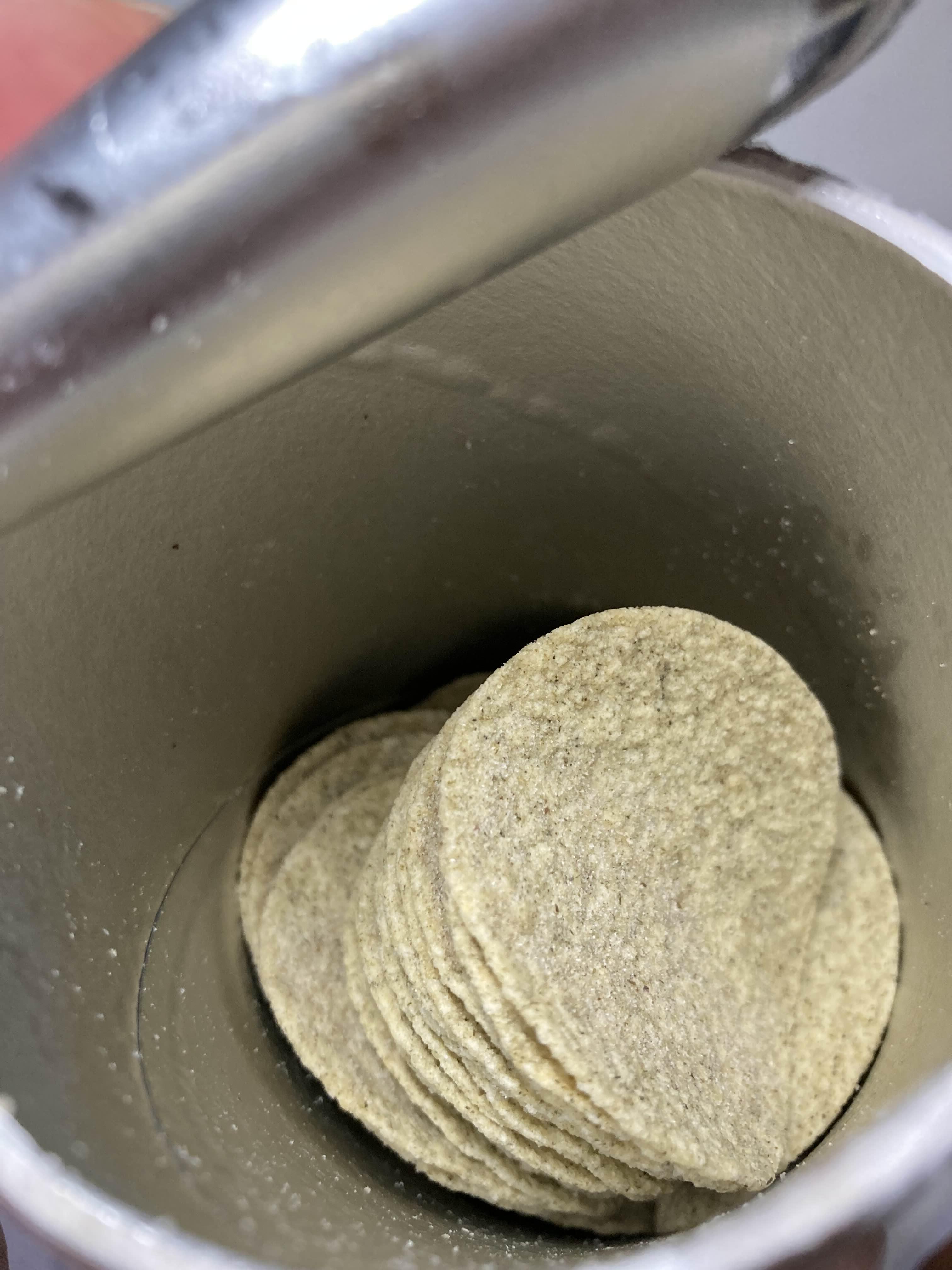 일반 프링글스 사이즈의 3분의 2.5 정도 되는 사이즈 입니다.