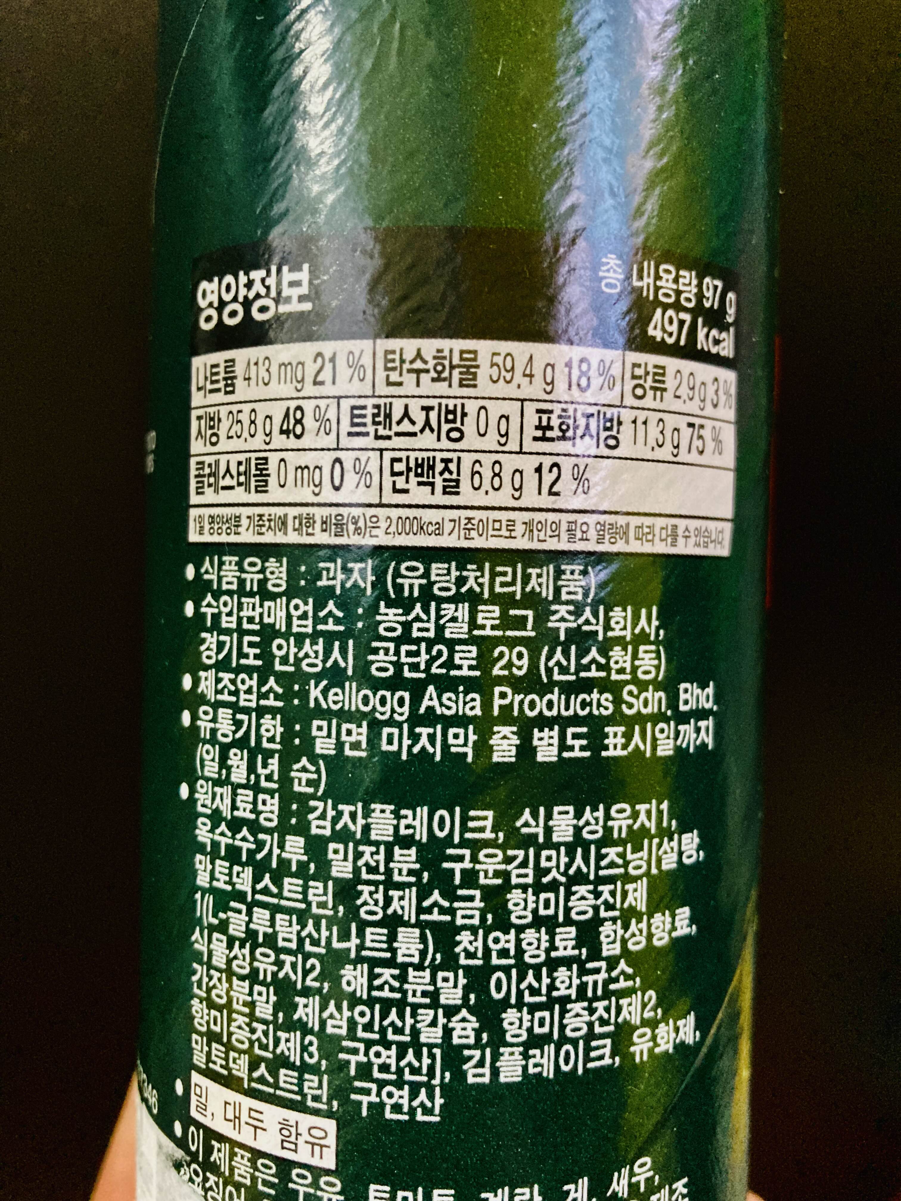 매우 어두침침한 녹색계열의 프링글스!!!라 더 눈에 띄었는데요!