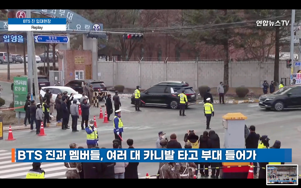 라는 인지와 함께 모든 사람들은 저 차량이 방탄소년단의 멤버들과 진으로 여기며 조용히 지켜보기만 하였습니다. 인터뷰도 인사도 안하고 들어간다고 미리 얘기를 하였기에, 이렇게 조용히 입대를 한 것으로 보입니다.