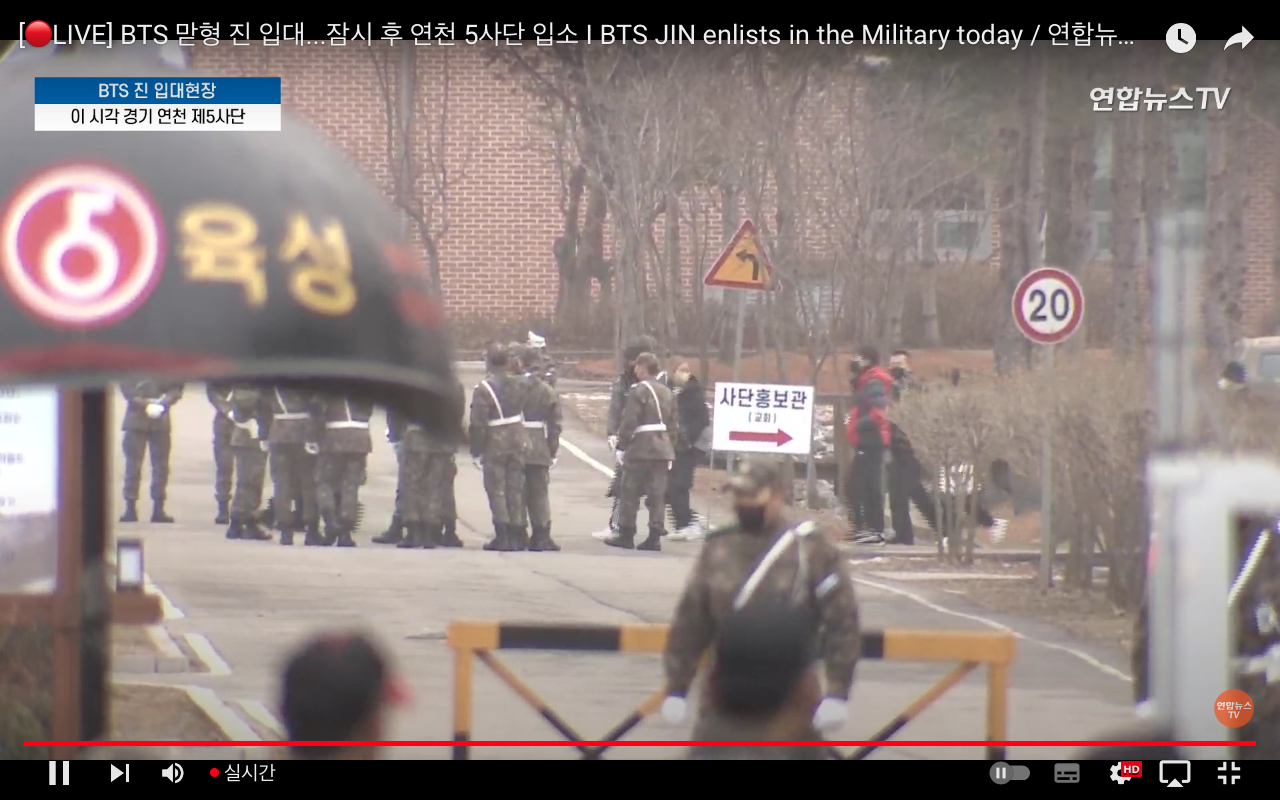 오늘 오후 2시까지 입소하게 되는 경기 연천 제5사단에서 여러 방송사에서 2시간 전부터 실시간으로 방송을 하였습니다. 주변 식당에서는 친절하게도 방탄소년단의 음악들이 흘러나오는 진풍경이 펼쳐졌고, 아미들은 방탄 멤버 맏형 #진이 부탁한 것 처럼 거의 안나온 것 같습니다 일단 지역이 멀어도 팬들이 어마어마하게 달려들 것 같은 그들의 인지도인데, 방탄 진이 아미들과 소통하는 #위버스 앱에서 나오지말라고 당부를 드린끝에 아미들은 진의 뜻을 잘 알아차리고 나오지 않을 것으로 보입니다.