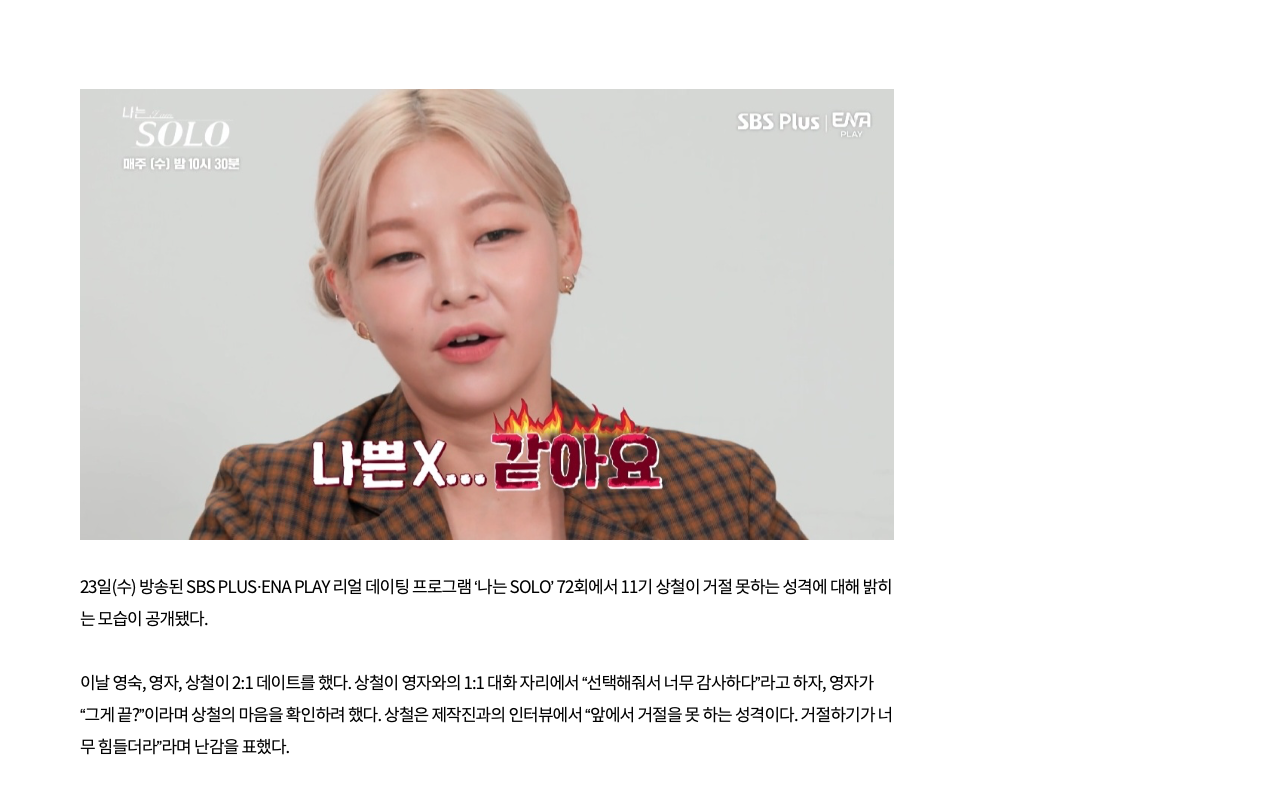 11기 상철을 처음에는 그렇지 않았는데, 영숙의 소개 이후로 미지근해졌다.