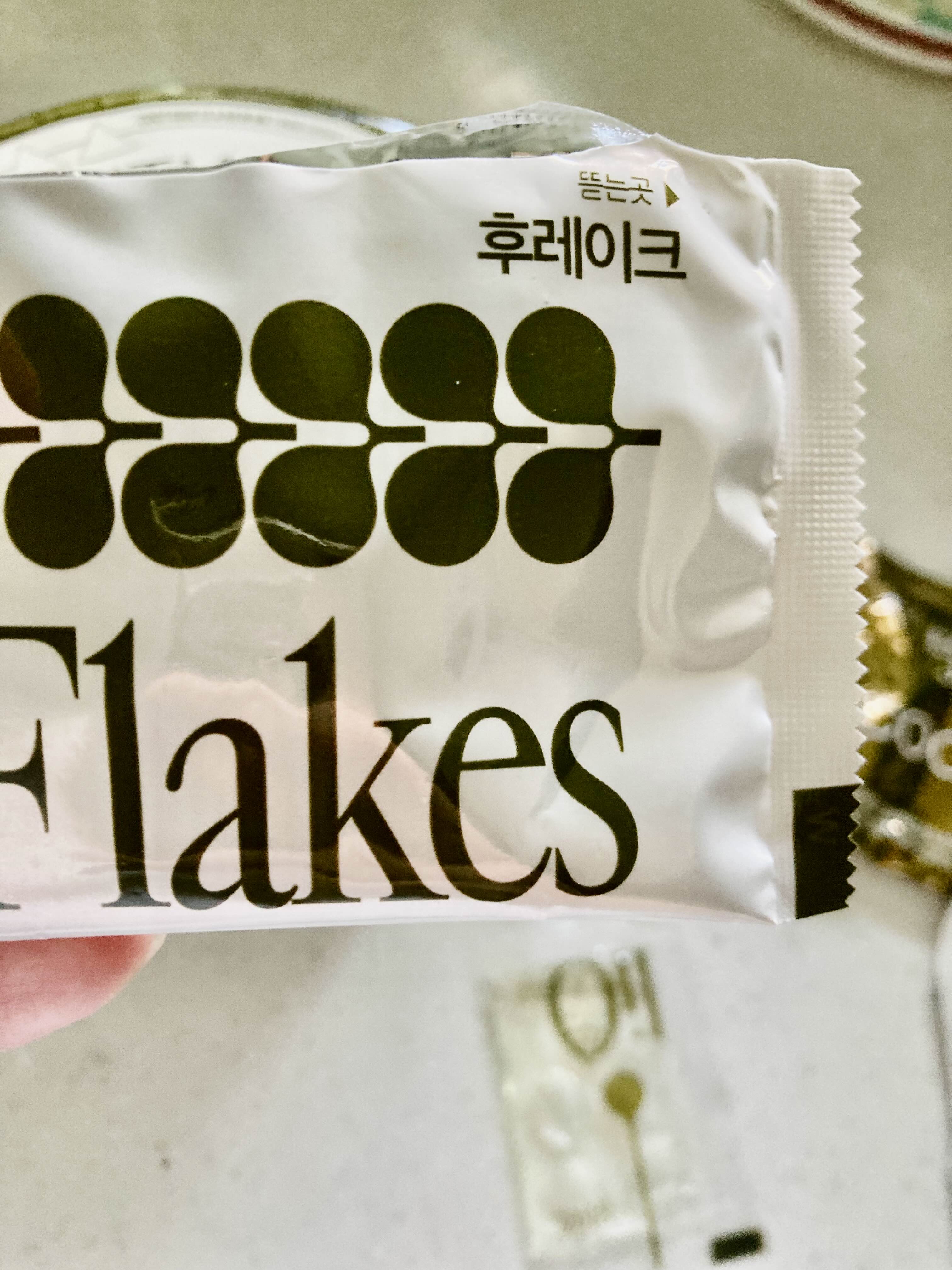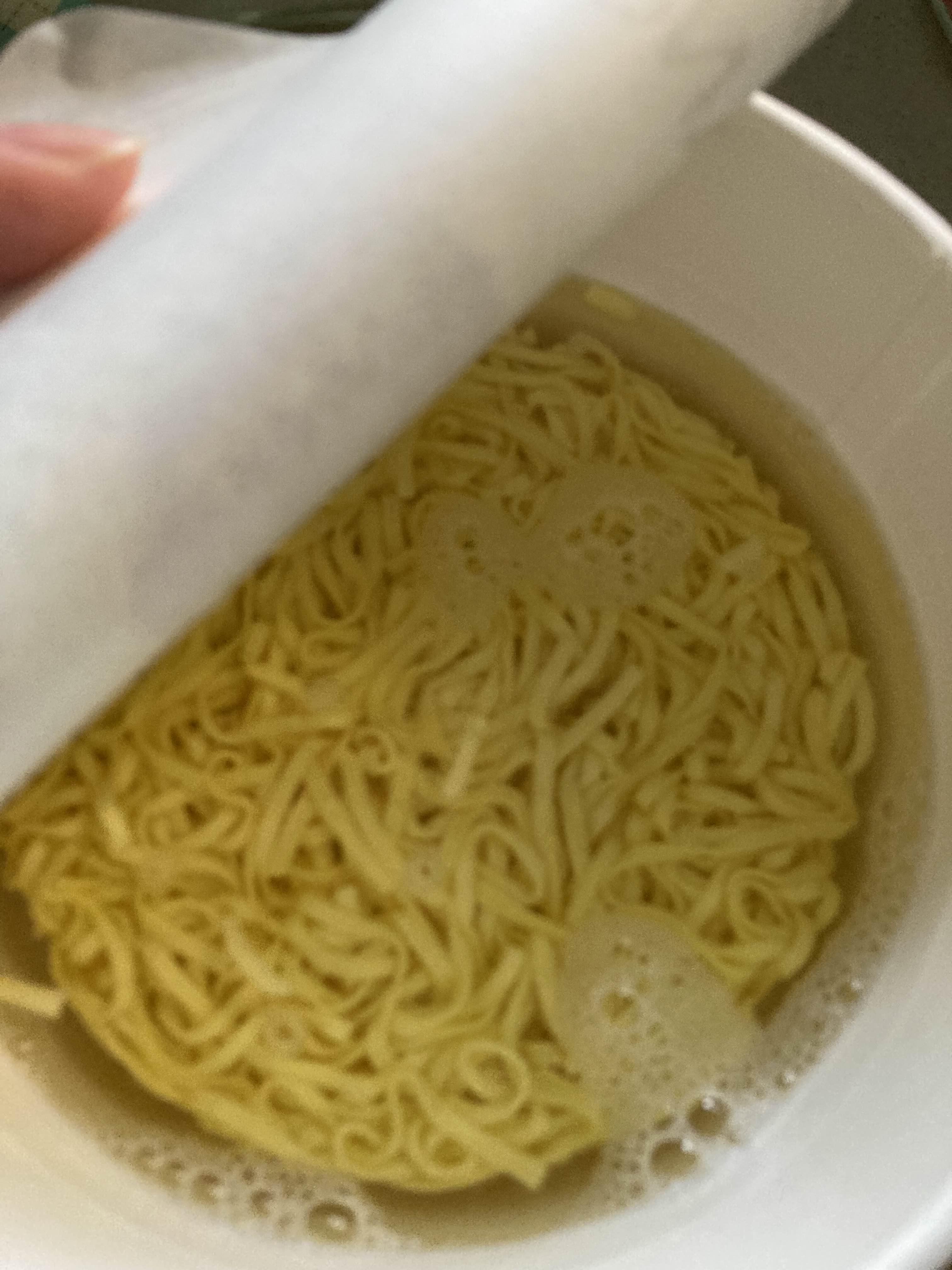 1. 라면 뚜껑을 열고 후레이크(1)를 넣는다.