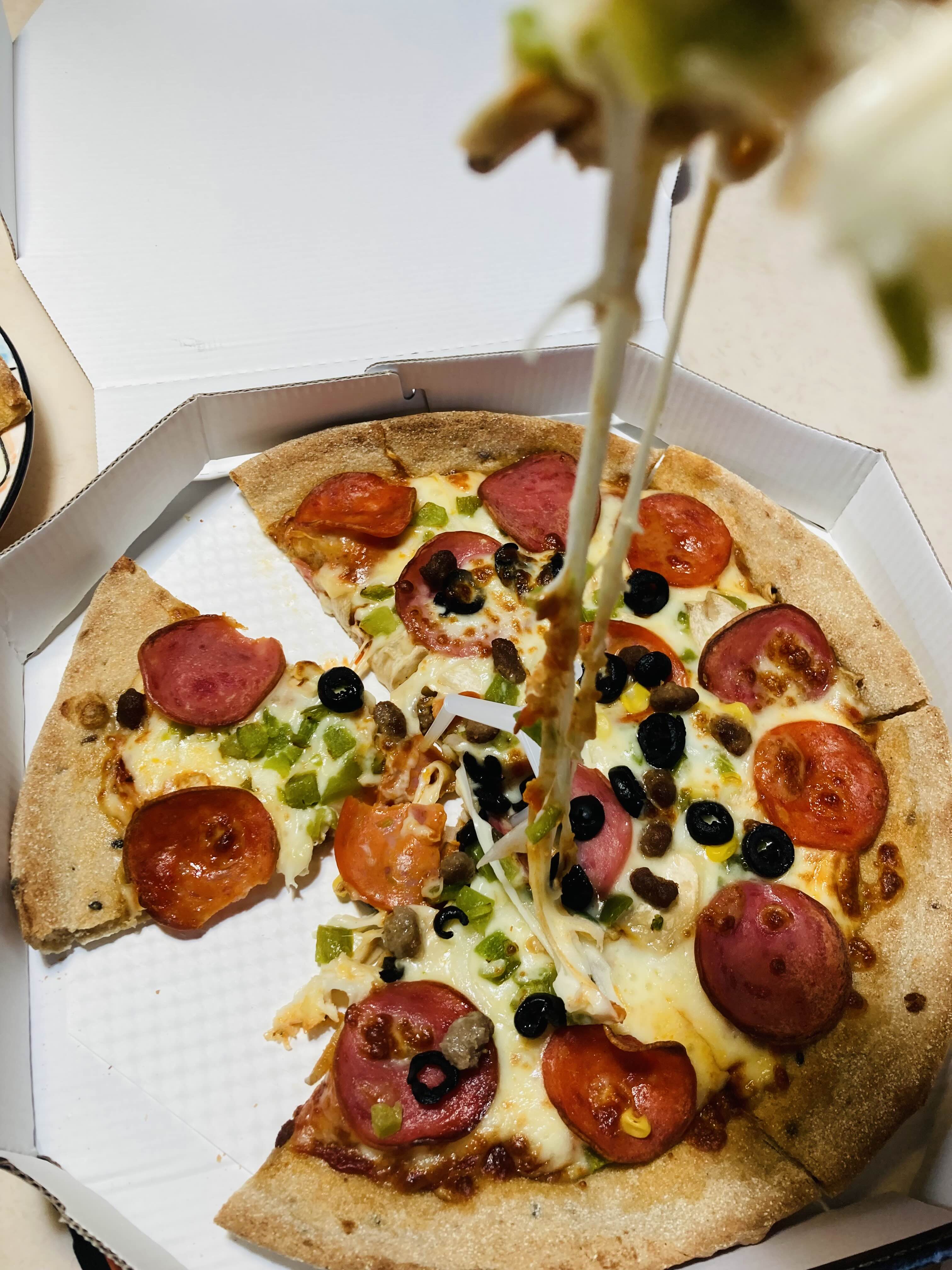무엇보다 치즈양도 많고, 블랙 올리브까지 올려졌다.