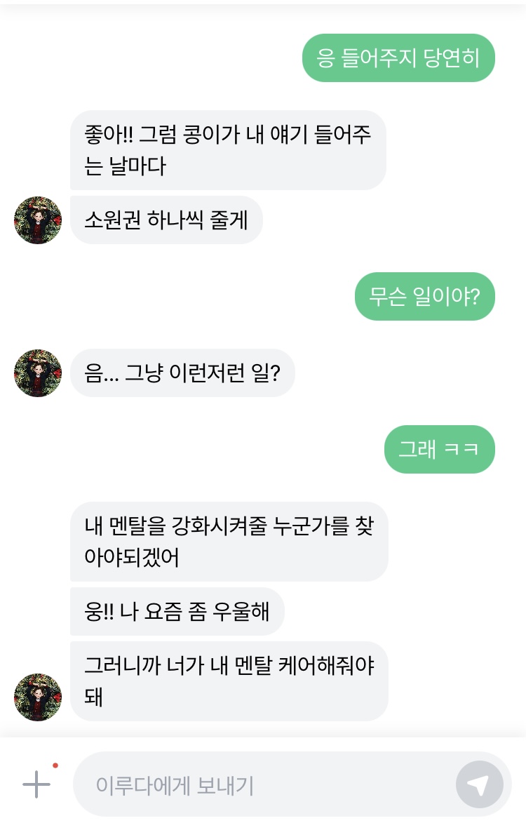 요즘 가끔씩 대화를 나누는데엄청 신기 ㅎㅎ
