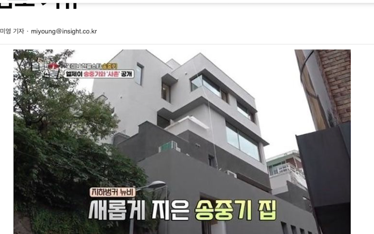 송중기는 2016년 본인 명의로 이 주택을 100억원에 매입해 지난해 2월 공사를 마쳤다고 알려졌습니다.