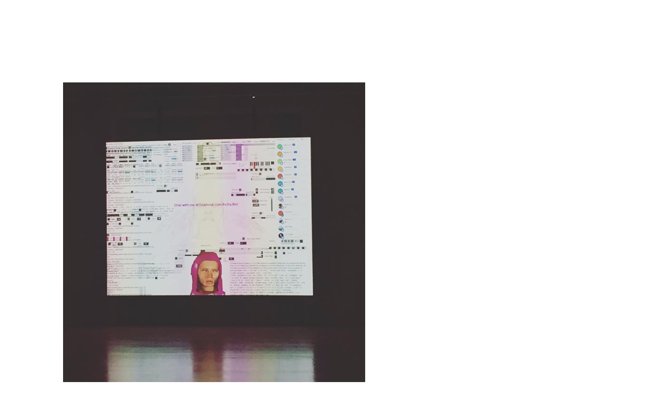 사진에는 보이지 않지만, Installation의 형태로 관객이 저 방 안에서 왼쪽 책상에 놓여있는 컴퓨터에 영어로 대화를 시도한다. 그리고 퀴즈처럼 이미 맞춰진 문장을 관객이 써놓게 되면 음악이 흘러나오고, 그런 모티브들이 모여 하나의 사운드를 만든다. 실시간 음악을 관객이 참여하여 얻게 되는 것을 AI와 Live 음악으로 보여주는 새로운 발상의 Installation이다. 작곡가 알렉산더는 이미 자신이 무엇을 만들어야 하는지 그리고 21세기에 무엇이 필요한지 아는 작곡가이다. 그의 작품은 정말 완벽하고, 사운드며 콘셉트이며 예술성이며 이미 한계를 뛰어넘고 있다. 이렇듯, 예술가가 테크닉을 잘 결합하고 연구하면 새로운 기술이 출현할 수 있다.