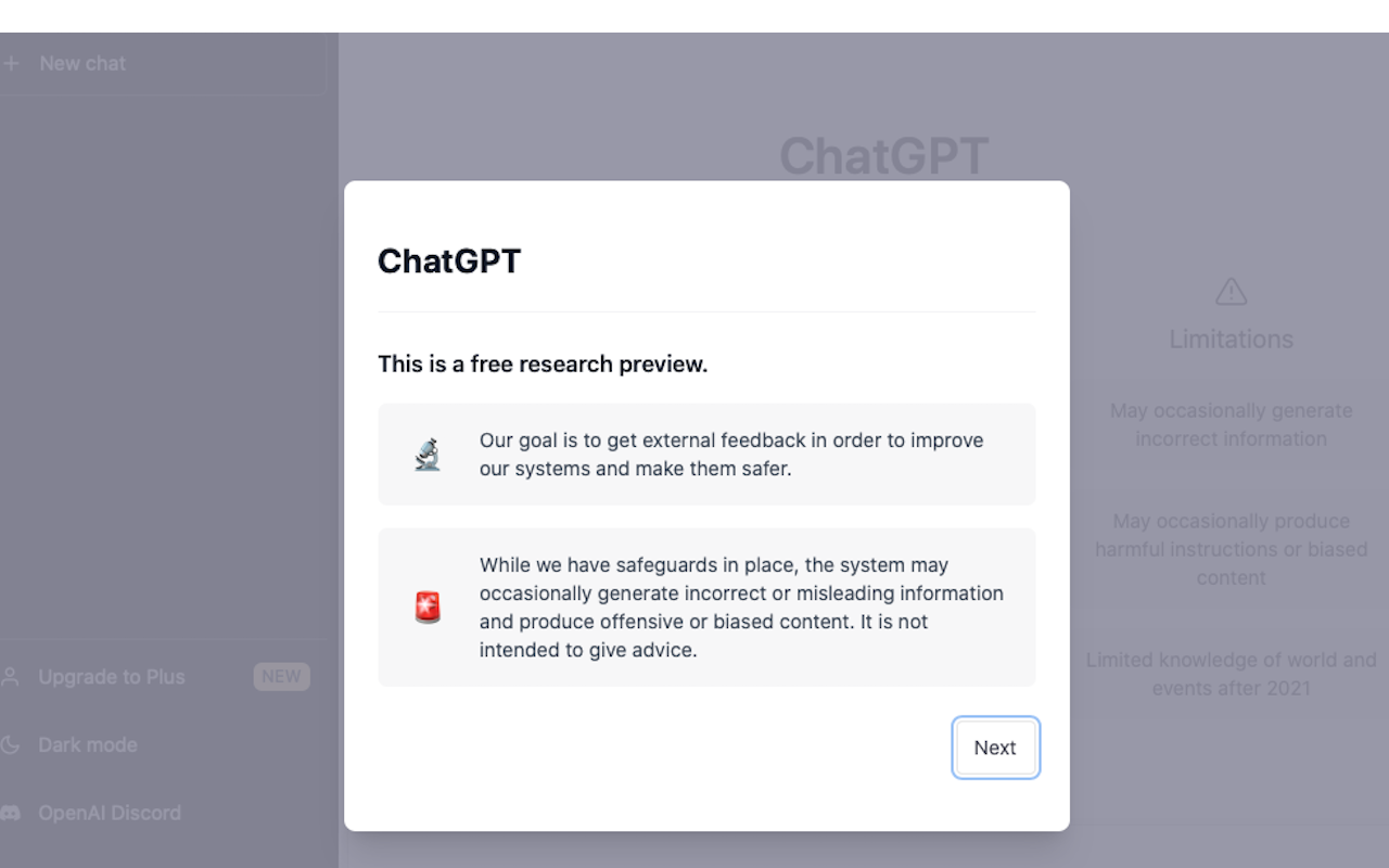 We’ve trained a model called ChatGPT which interacts in a conversational way. The dialogue format makes it possible for ChatGPT to answer followup questions, admit its mistakes, challenge incorrect premises, and reject inappropriate requests. ChatGPT is