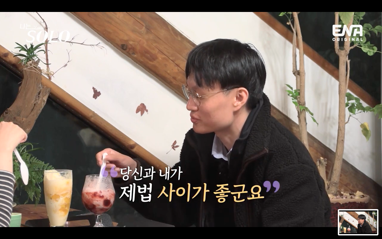 적어도 과거에 일본문화에 취해봤던 이들은 하나같이 말을 잘하는 사람들이 많다. 오타쿠 기질이 있는 사람이 주위에 몇몇 있는데 대부분 외모는 정말 달나라 저세상인데 말은 청산유수.... 같다. 말을 생각보다 예쁘게 한다? 그리고 생각보다 재밌다? 생각보다 염치없다? ㅋㅋㅋ 솔직히 똑똑하고 직업 좋고 머리 좋고 그러면 뭔가 따질 것도 많고 그럴 것 같았는데, 처음에 현숙을 뽑더니 이제는 동종업계 분위기가 느껴진다며 순자를 뽑았는데 그때 생각했다. " 아, 이 사람 진짜 진정성이 있네"라고. 진짜 마음 가는 데로 하는구나? 광수는 데이트할 때에도 코딩을 한다고 인터뷰에서 나왔듯이 코딩 오타쿠인 데다가 대화의 소통을 중요시 여기는 남자다. 아무래도 이리저리 방방 뛰는 현숙보다 한 곳에 정착한다며 외적으로 내적으로 아름답고 뛰어난 순자가 낫지 않을까 생각한다.