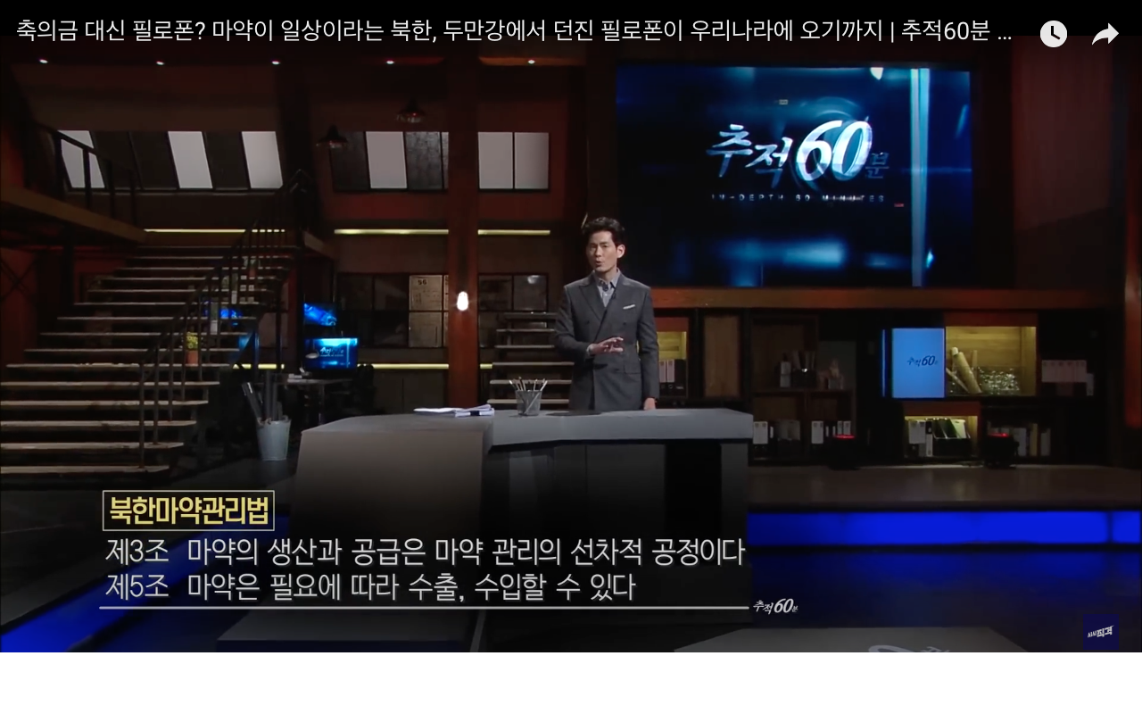 - 필로폰, 99퍼센트가 모두 북한산 (품질이 좋다고)
