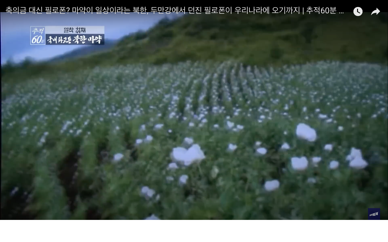 2016년에 방송된 추적60분의 내용이 다시금 회자되고 있는 상황입니다. 과거에 북한산 마약에 대한 실태를 여러 번 언론이나 방송에서 언급을 한 적이 있는데요. 북한은 그만큼 오랜 시간 마약을 생산하고 그것을 통해 엄청난 수출을 하고 이익을 본 것으로 알려져 있기도 합니다. 양귀비 농장이 있을 정도로 대규모 사업을 하고 있는 것도 방송으로 확인되었습니다.