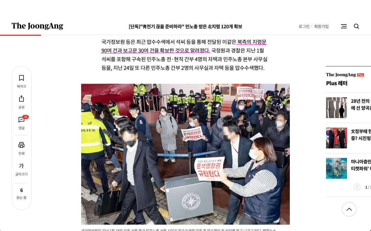국정원은 최근 압수수색을 벌인 민노총의 소속의 간첩 혐의를 가지고 있는 몇몇 이들의 조사에서 북한 지령이 120개가 발견되었다고 합니다.