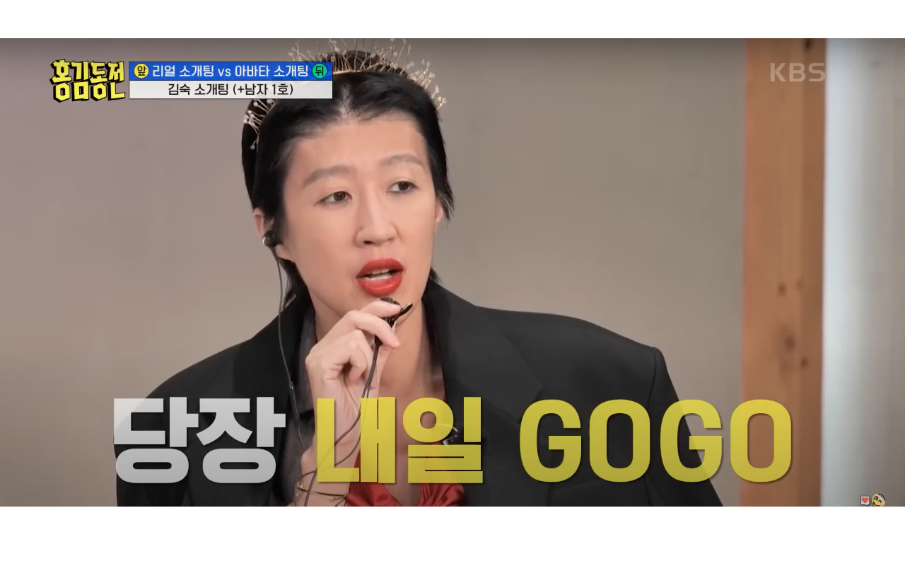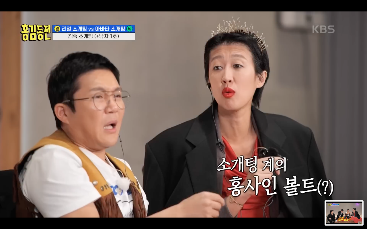 최근에 김숙씨가 한 일반인 분과 소개팅을 하는 컨셉으로 홍김동전에서 나왔는데