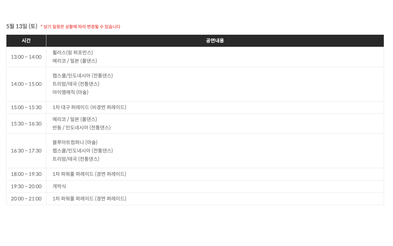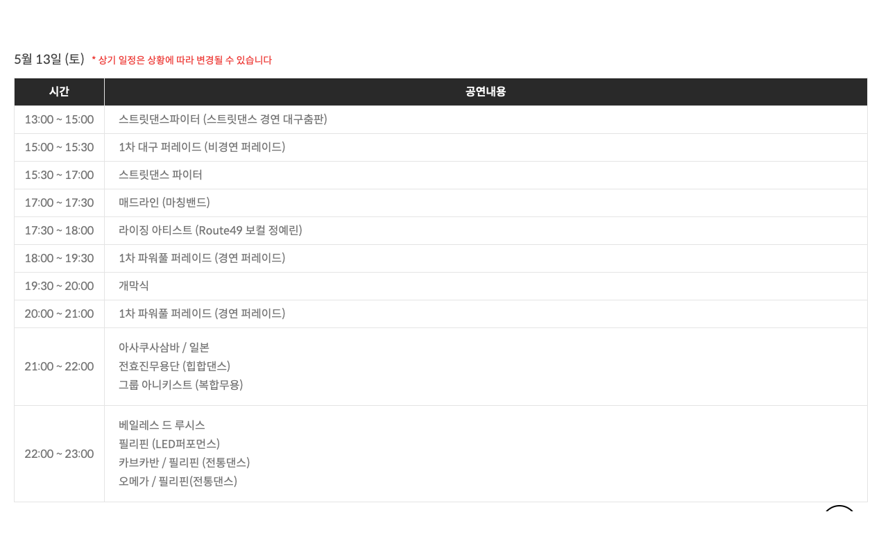 본 행사 2023년 5월13일부터 2023년 5월 14일까지