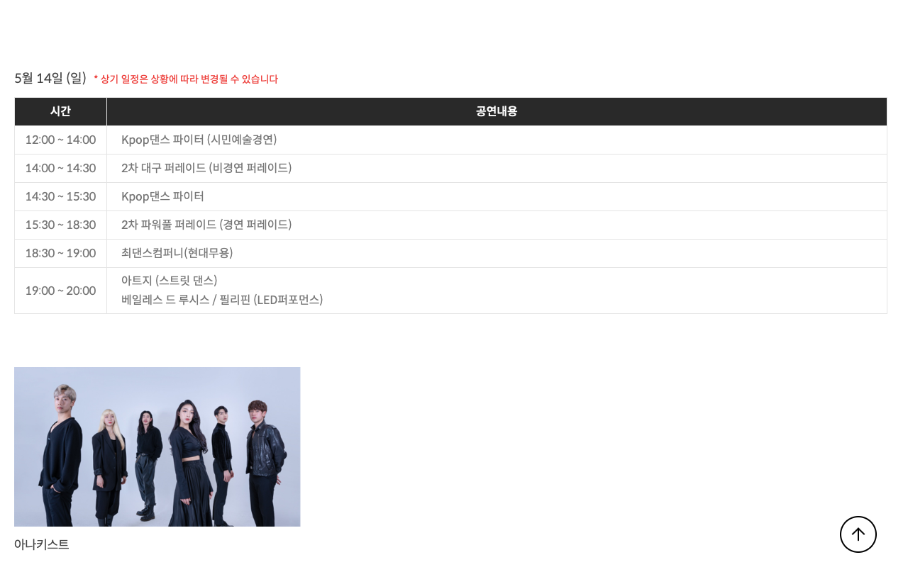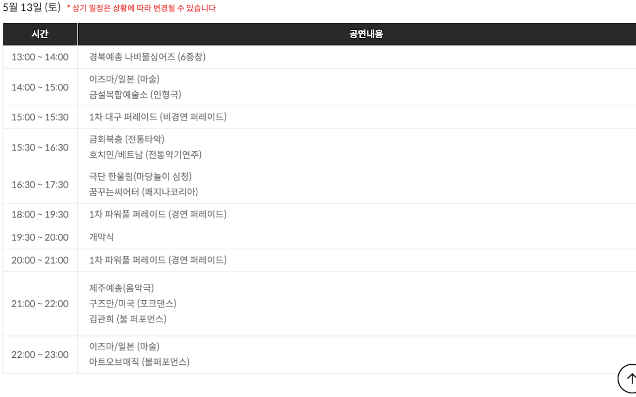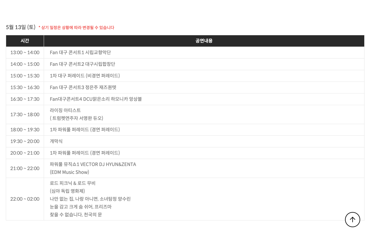 2023.5.12.(금) 18:00~20:00 / 2023.5.13(토) 12:00-02:00 / 2023.05.14.(일) 12:00-22:00