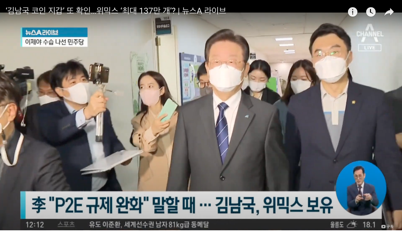 Point : 이재명이 P2E 규제 완화 말할 때 김남국은 당시 P2E 코인이었던 위믹스를 보유 하고 있었다.