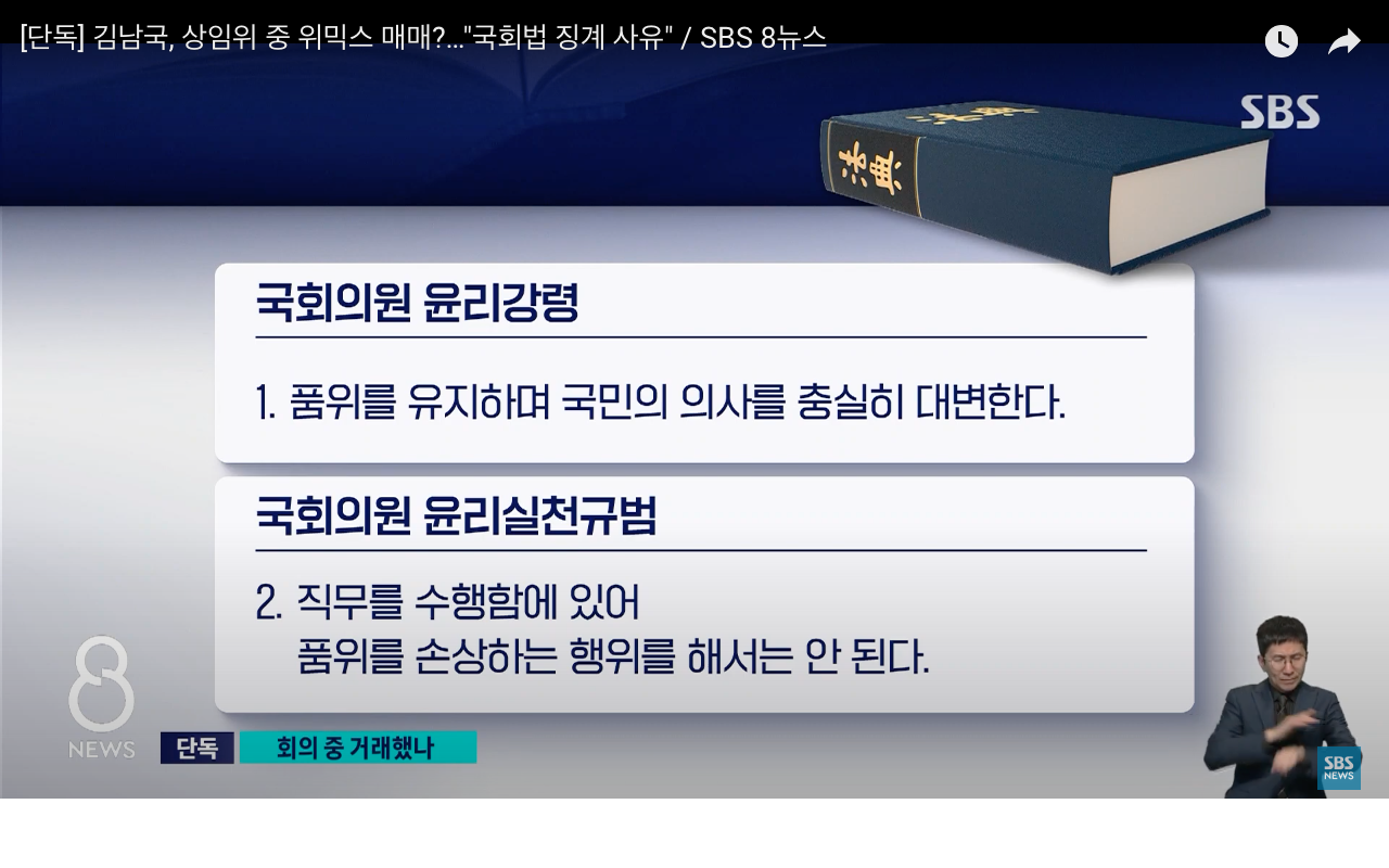 국회의원 윤리실천규범에 어긋나는 행동일 뿐만이 아니라