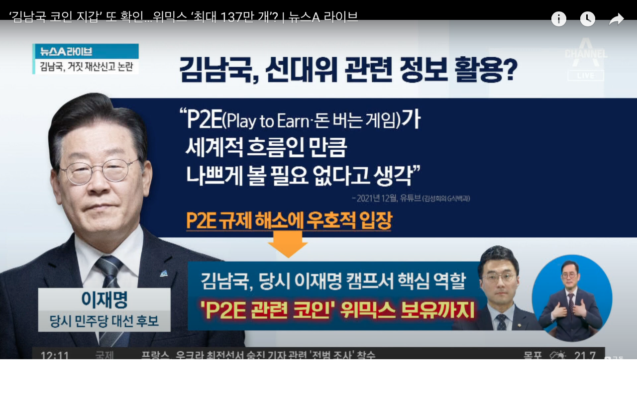 2021년 당시, 이재명 대표 대선때 이재명 캠프서 김남국은 핵심적인 인물이었다. 그 당시에 P2E에 대한 언급이며 규제 완화에 대한 것을 언급한다. 그리고 김남국은 P2E 코인 "위믹스"를 보유?....굉장한 성장주를 위믹스를 다수 보유하고 있었다. 이게 이해충돌 아니냐? 라는 논란.