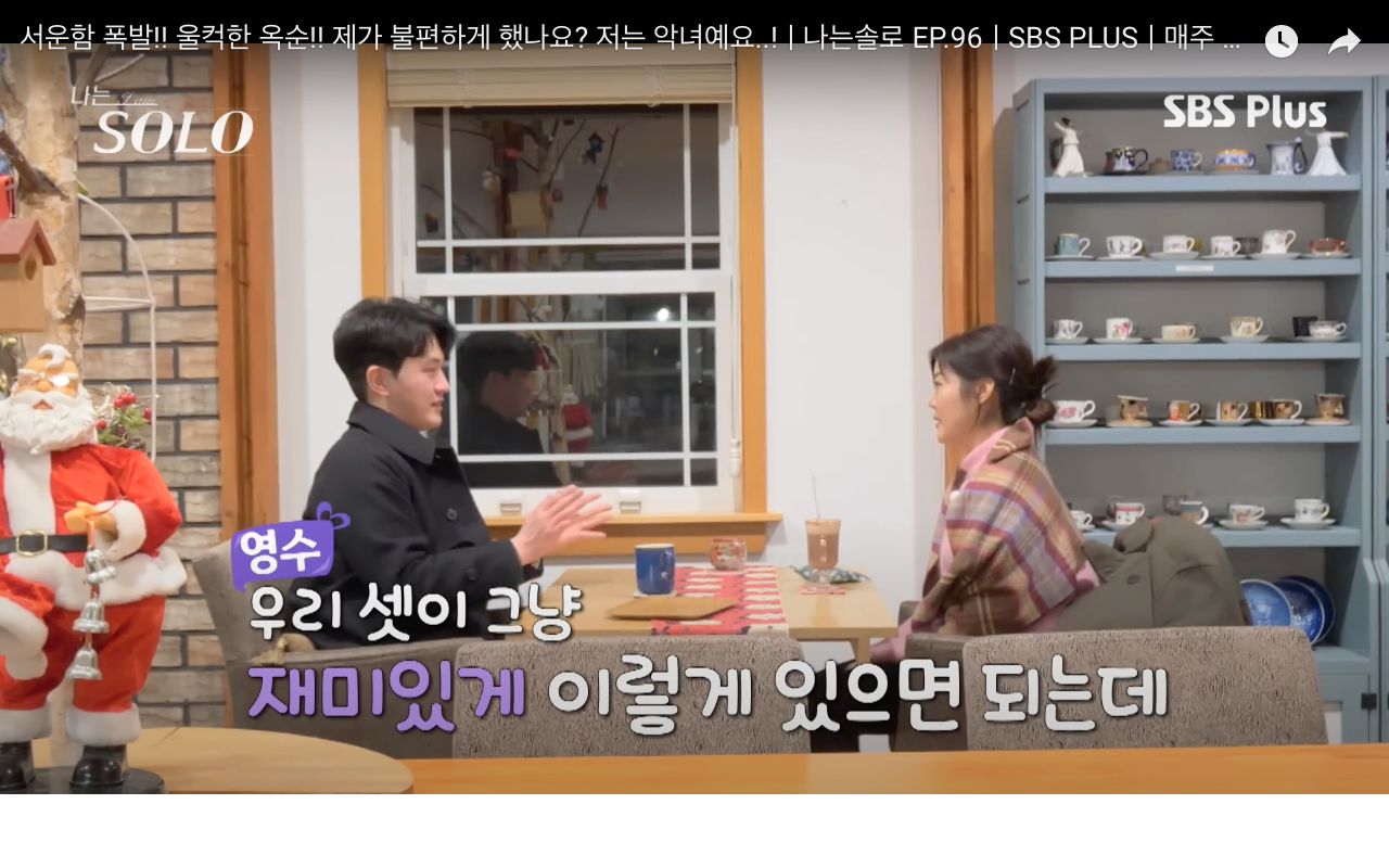 자신을 금사빠라고 했던 영수는, 이틀째 누구에게도 미지근한 반응을 보인다 솔로나라에 왔으니 저정도로 한 것이겠지만 실제로 밖에 나간다고 한다면 옥순을 선택할까? 내가 볼땐 아니다. 옥순은 예전 옥순들과 비교해 예쁘지도 않고 왜 저 분이 옥순이인 줄 잘 모르겠는 것이 공감이 되지 않는다. 남자들도 처음엔 옥순이 그랬겠지만, 딱히 그렇게 적극적인 표현을 하는 분들이 별로 없어 보이고 화면에서는 옥순이만 영수에게 너무 저돌적으로 질문하고 압박하는 느낌이 든다.