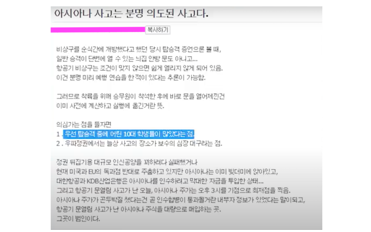 (진짜 계획적이지 않았다면, 어떻게 이 무거운 문을 열지도 못했을 것이고 기압차에 따른 비상구 문이 열리지 않을 수도 있다는 사실을 알았을 텐데, 굳이 상공에 떠있는 비행기 문을 열면 어떻게 되는지 초딩도 알텐데, 열었다는 것에는 어떠한 의도가 숨어있다는 것을 느낄 수 있다. 제주도에서 대구가 얼마나 걸린다고...그렇게 빨리고 내리고 싶었다는 말이?. 공황장애나 다른 장애가 있었다면 몰라도...