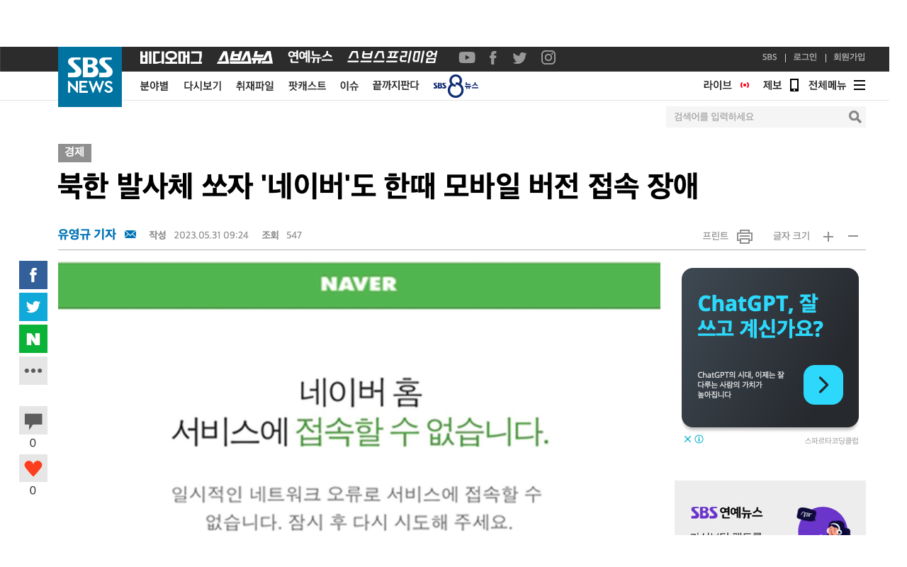 북한 발사체 이후, 네이버 한때 접속 장애