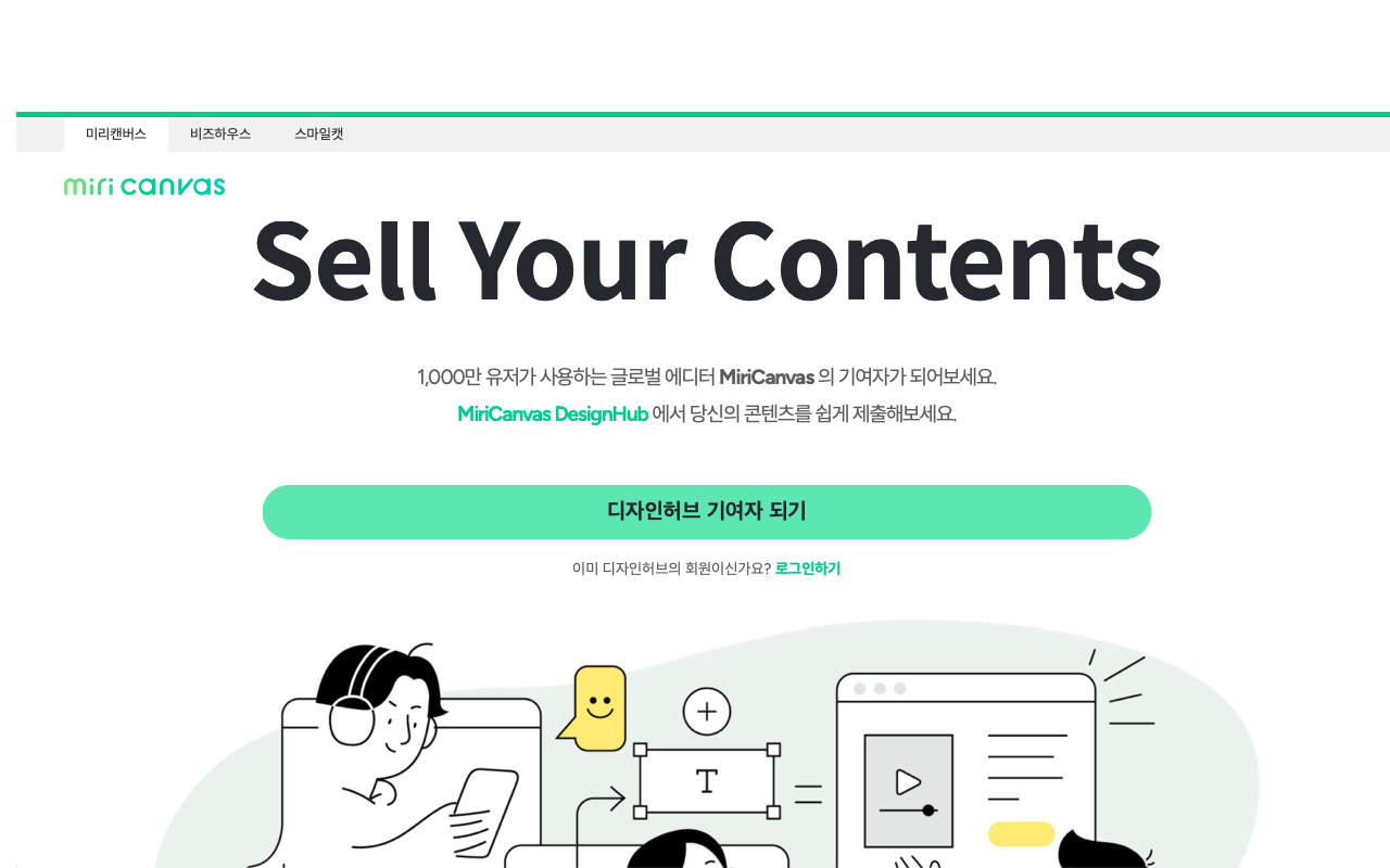 Sell Your Contents 1,000만 유저가 사용하는 글로벌 에디터 MiriCanvas 의 기여자가 되어보세요. MiriCanvas DesignHub 에서 당신의 콘텐츠를 쉽게 제출해보세요. 이미 디자인허브의 회원이신가요? 로그인하기
