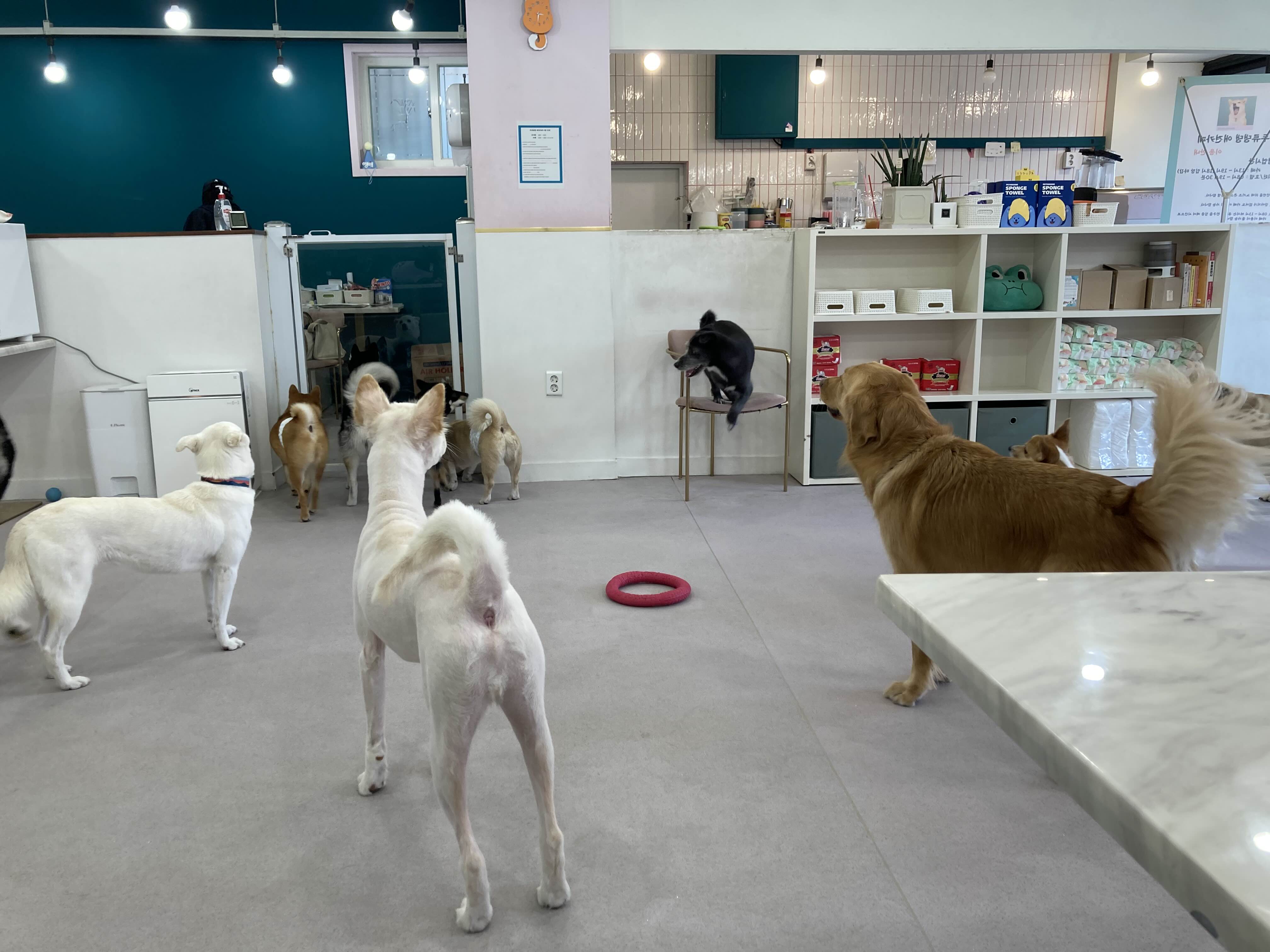 아는 동생들과 함께 마실을 나오면서 강아지 유치원겸 카페를 발견했는데