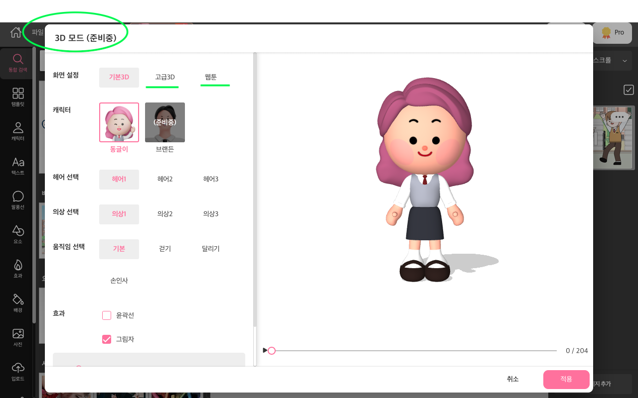 시스템은 마치, 미리캔버스판 애니메이션 버젼 같다.