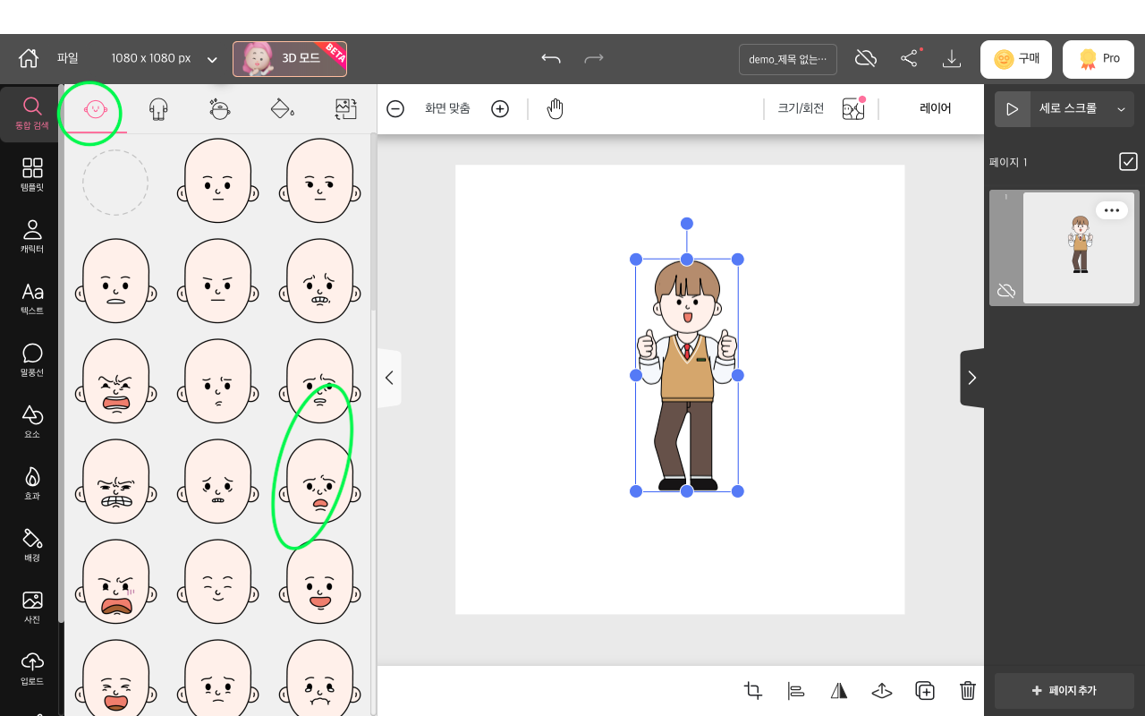 그리고 표정이나 옷, 제스추어 등을 변경 할 수 있다.