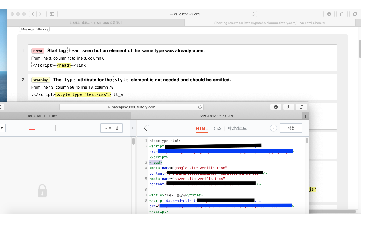 티스토리 블로그 XHTML CSS 오류를 잡는 프로그램이 있습니다.