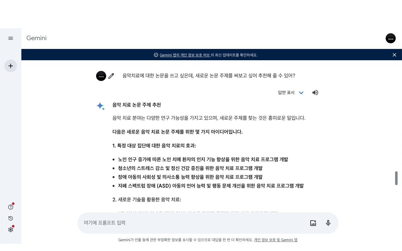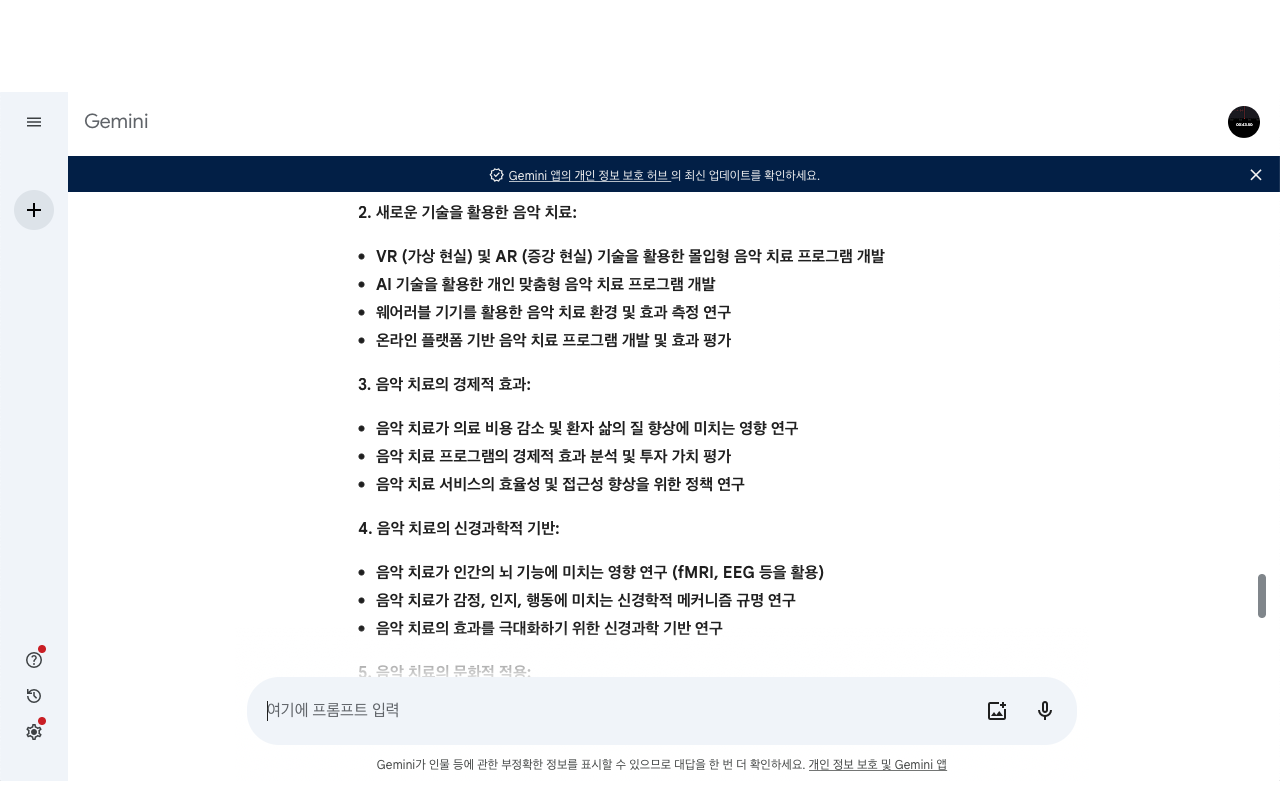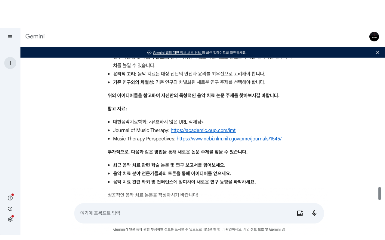 음.....음악치료에 관한 논문 주제 아이디어 질문을 해보았습니다.