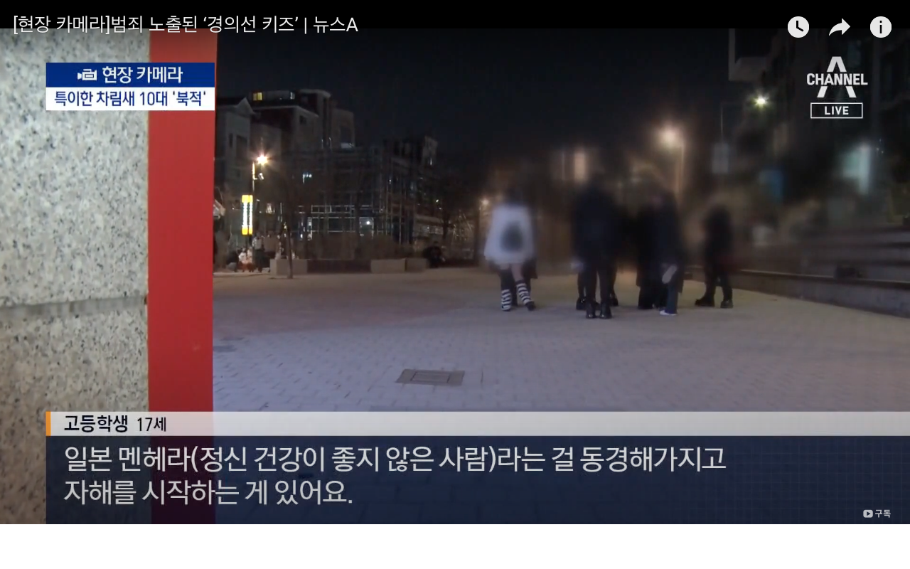 [서울=뉴시스]이주영 인턴 기자 = 서울 도심 한복판에서 우울증을 앓는 컨셉의 '멘헤라 문화'를 추구하는 가출 청소년들이 몰려 논란이 일고 있다