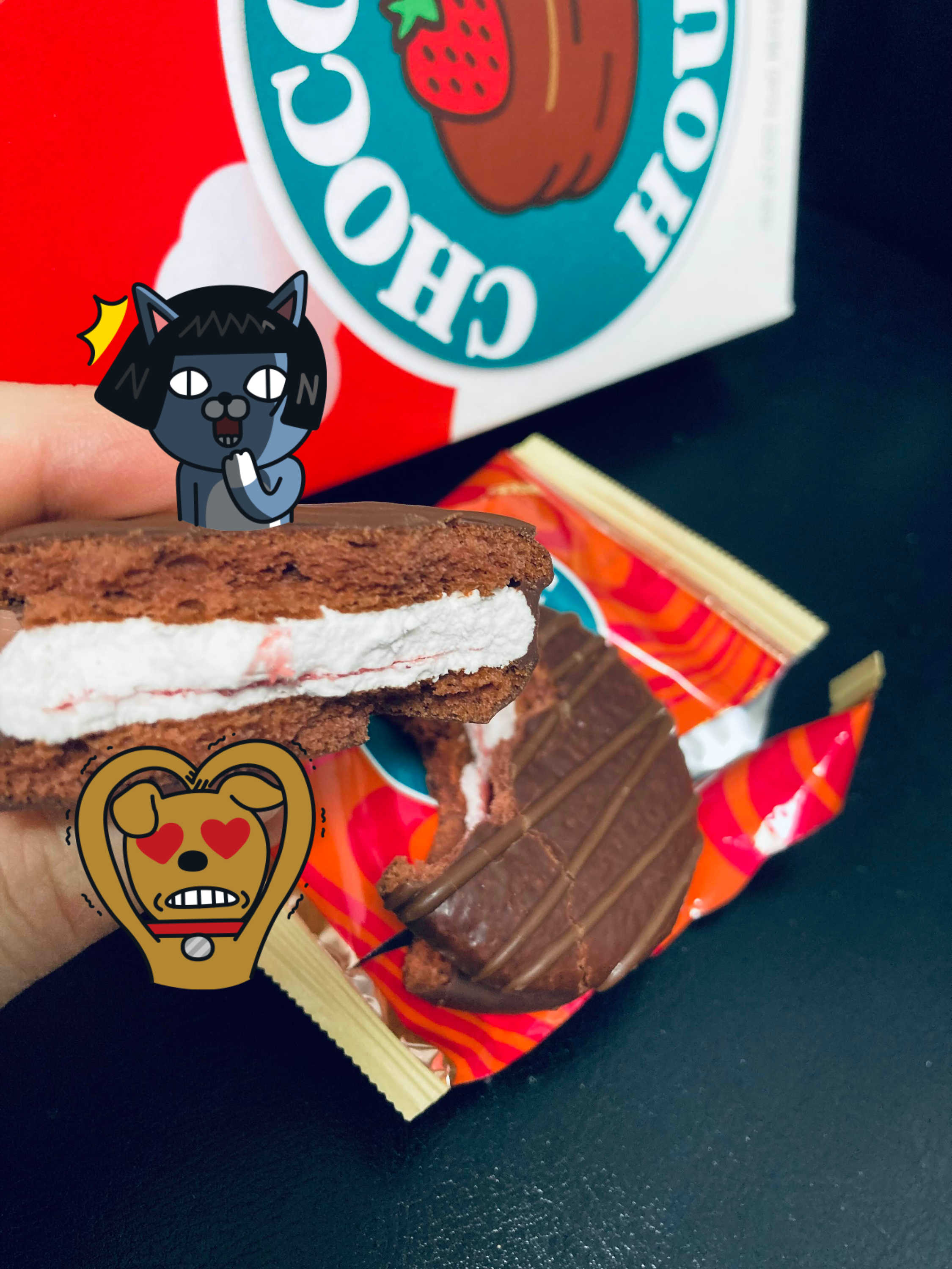오리지널 초코파이에 딸기쨈을 바른.....?