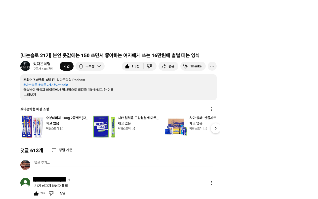 나는 솔로를 최근에 잘 안보고 있다가, 최근 논란이 되어 유투브에 굉장한 이슈로 떠오른 21기 데이트 영상이 올라오면서 우연히 보게되었는데....