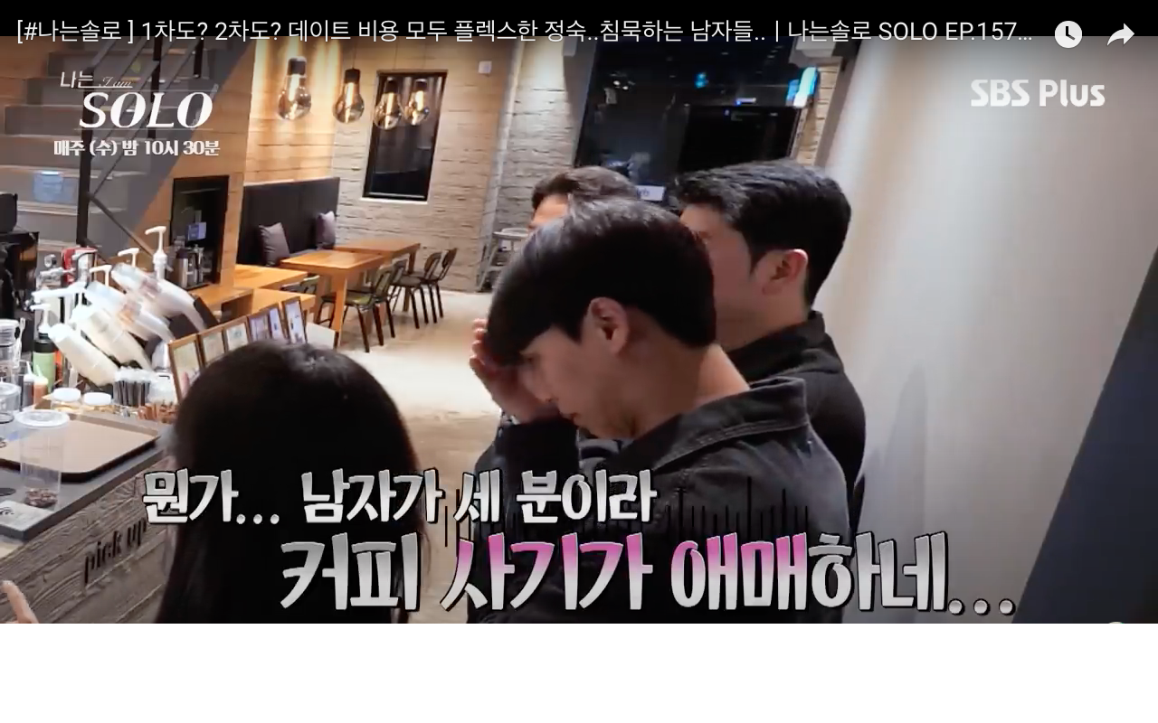 "이전에 또 <튀는 행동을 하고 싶지 않았다> 라고 말한 남자분의...명언;;;;이 또 나왔다..." 남자 분이 세 명이라 커피 사기가 애매한..."