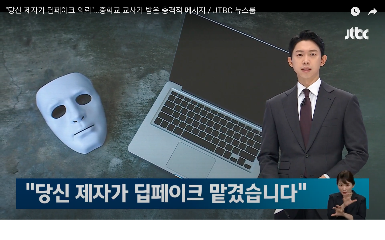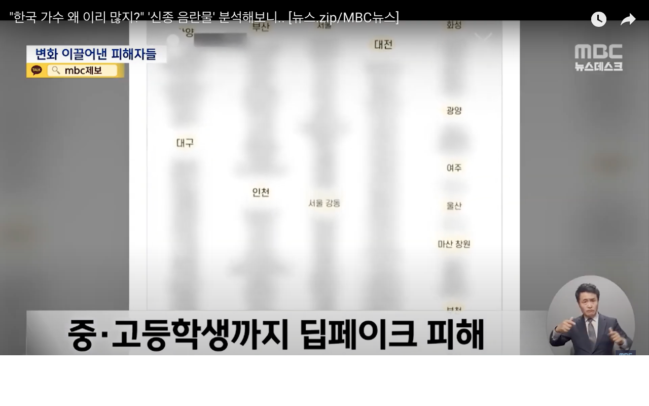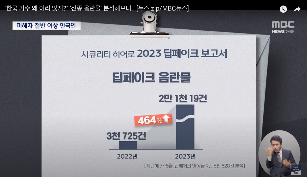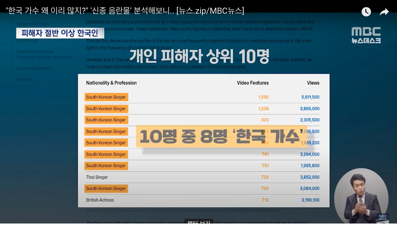전 세계 사이트에 딥페이크 음란물로 가장 많이 노출된 10명 중 8 명이 한국인 가수였다고 알려져 충격을 주고 있다