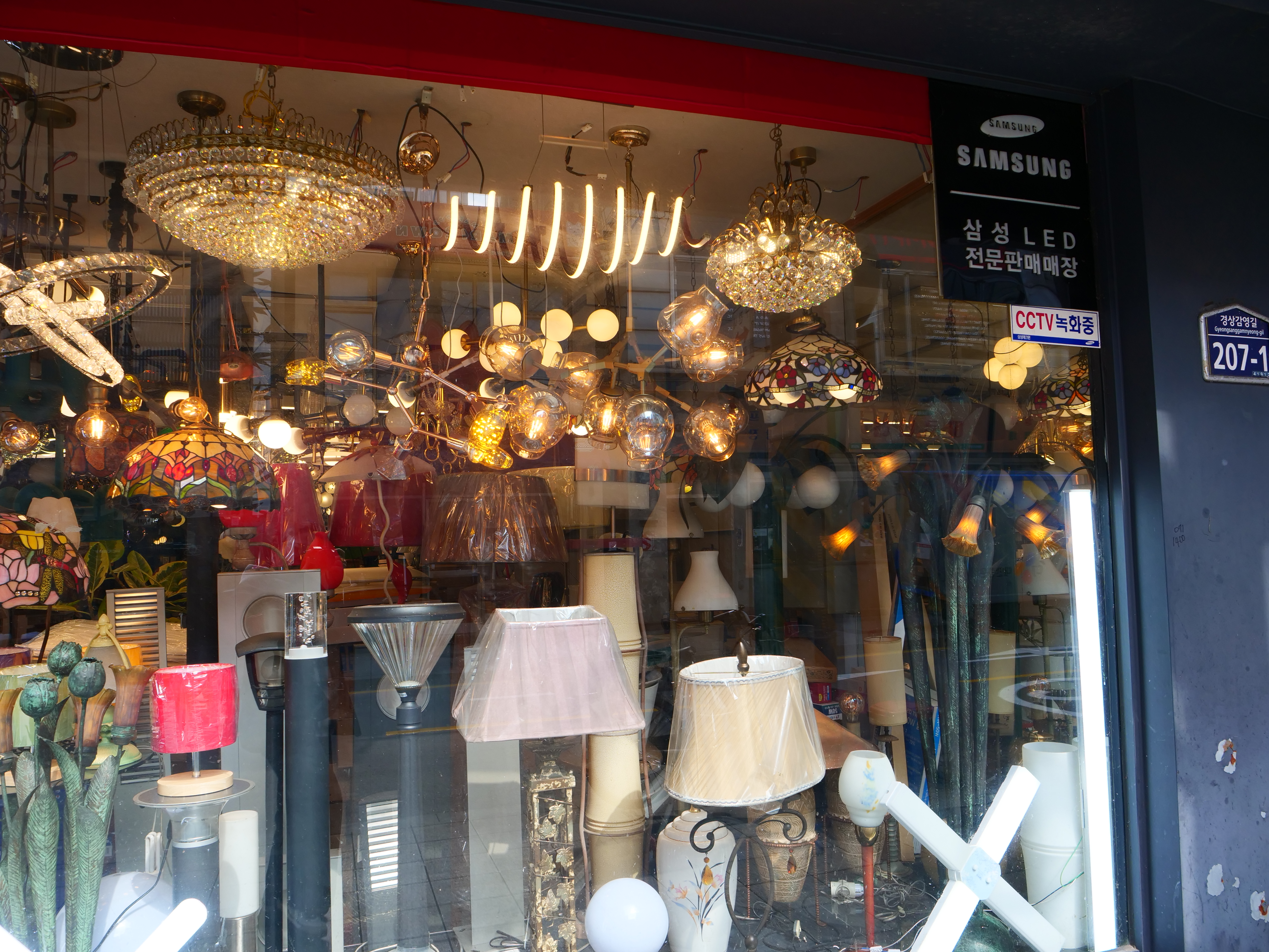 작은 가게인데...오밀조밀 조명들이 보인다