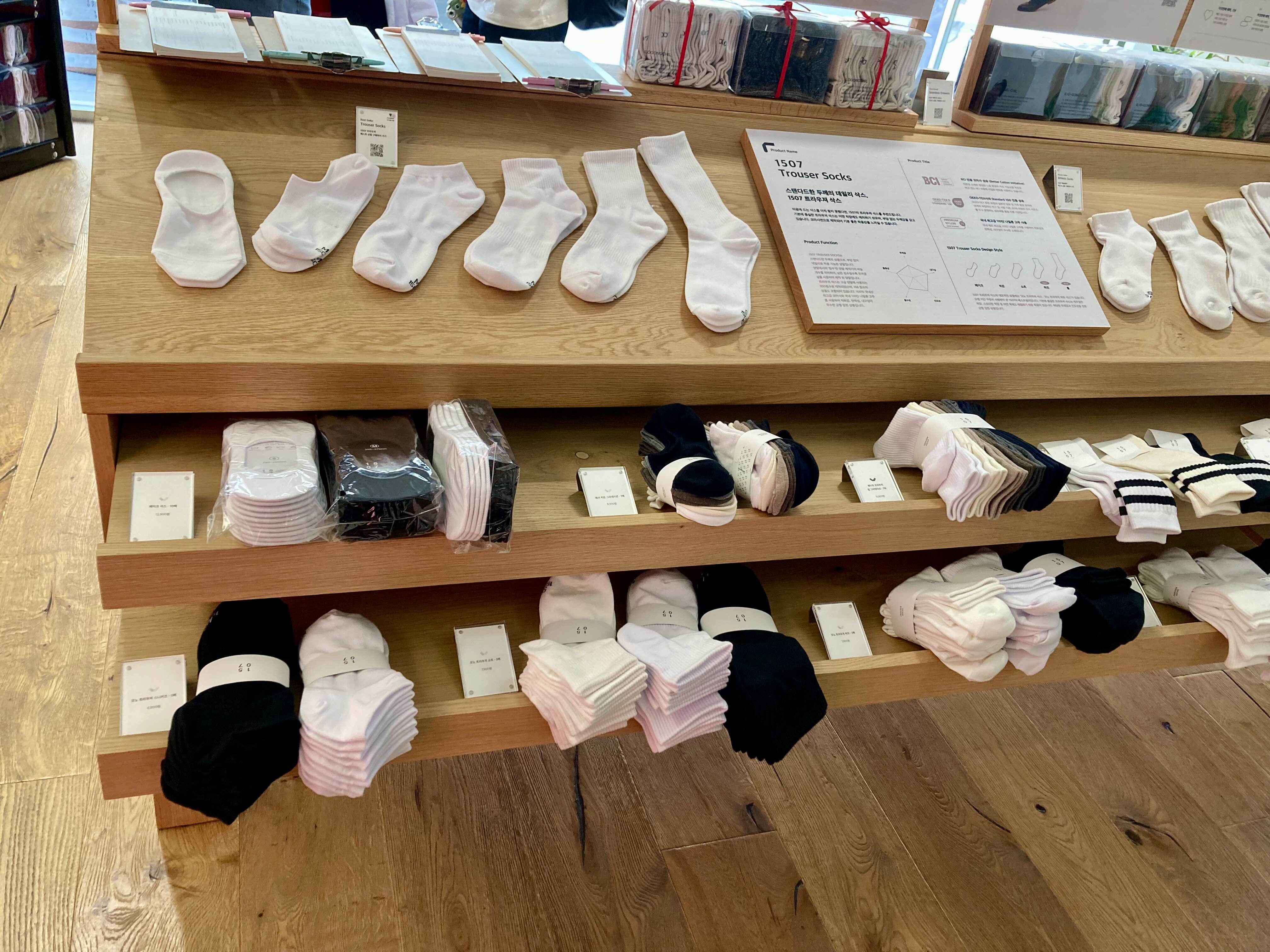 계산한 후, 맞은 편 또 다른 직원에게 건네주면 전시된 주문한 양말을 포장해주면서 받아갈 수 있다