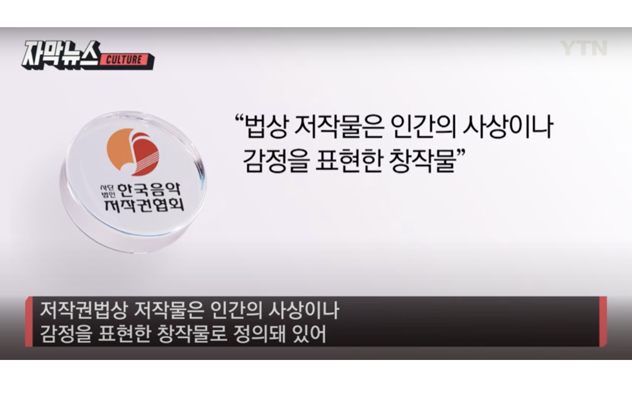 한차례 AI에 대한 창작물 저작권에 대한 논란이 끊으질 않았다 그리고 음악가들사이에선 저작권에 대한 문제가 한차례 큰 과제로 남아있었다. 그러다 최근 한국음악저작권협회에서 AI 음악 저작권 등록을 못하는 시스템을 도입할 예정이라는 발표를 했다. 그 예시로 트로트 가수 홍진영이 2022년에 발표한 음원 중에 AI가 작곡한 곡으로 알려지면서 이 곡이 저작권을 받아갈 수 없다고 언급을 했다.